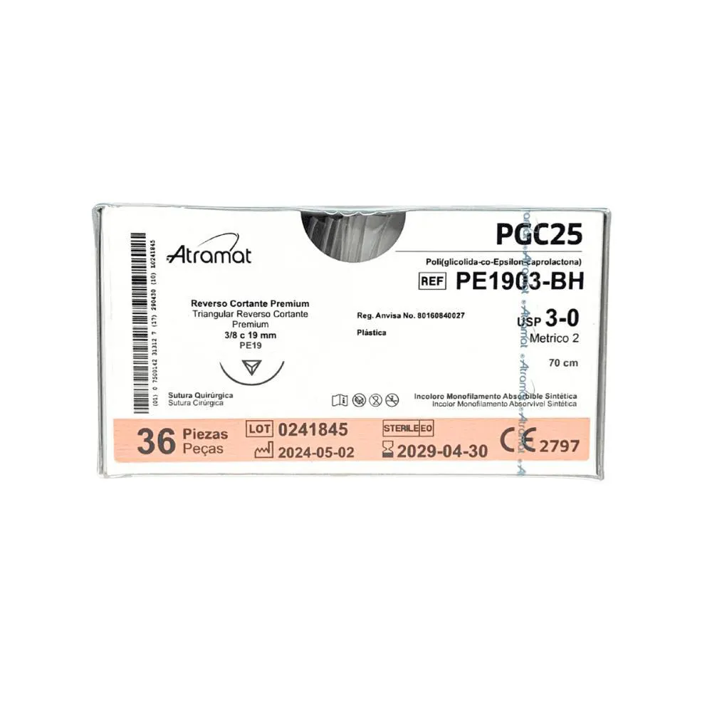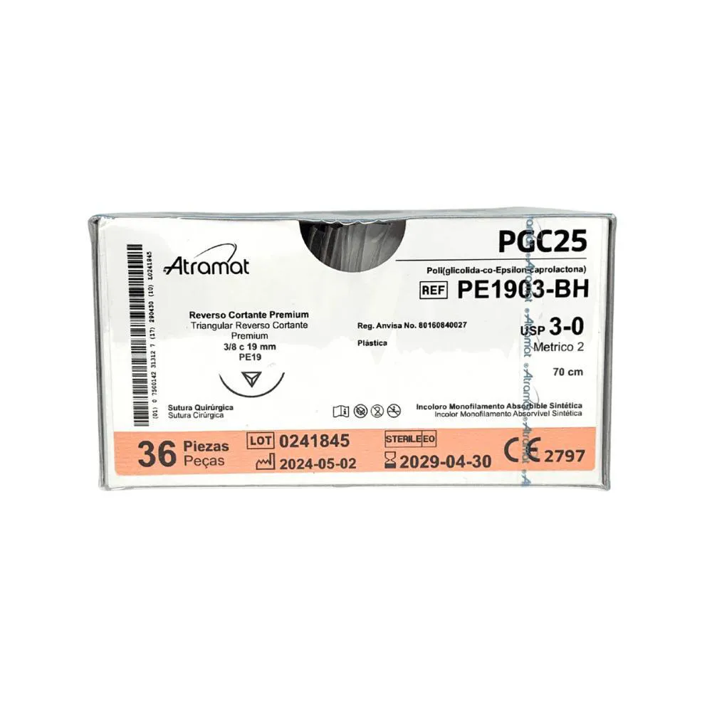 Fio de Sutura Poliglicolida - Caprolactona Incolor 3-0 Ag Triangular 3/8 19Mm - Pe1903-Bh - Atramat