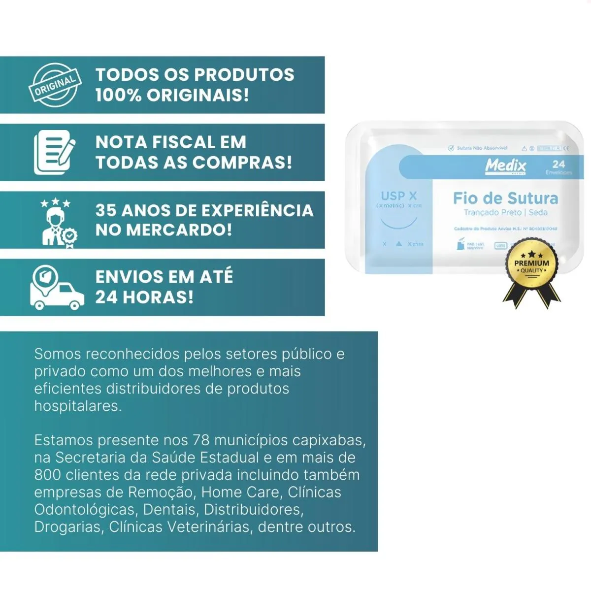 Fio Seda de Sutura com 24 Unidades Trançado Preto Cr3/8 45Cm - Envio Imediato