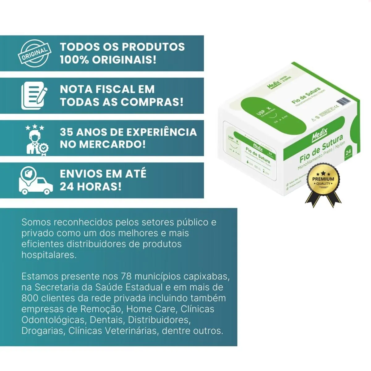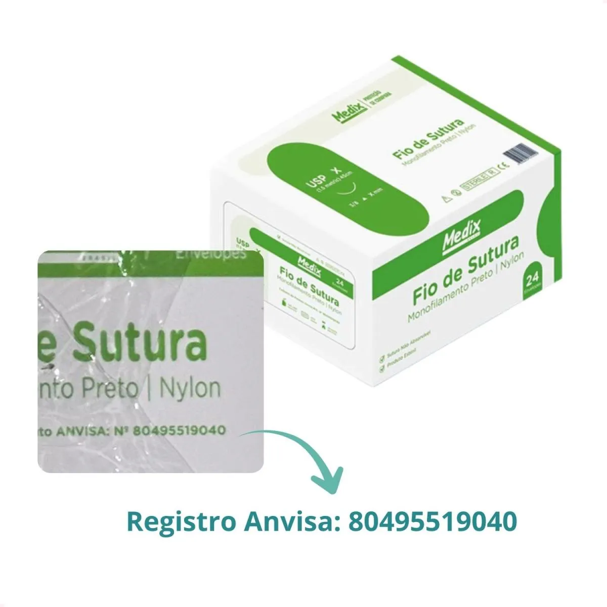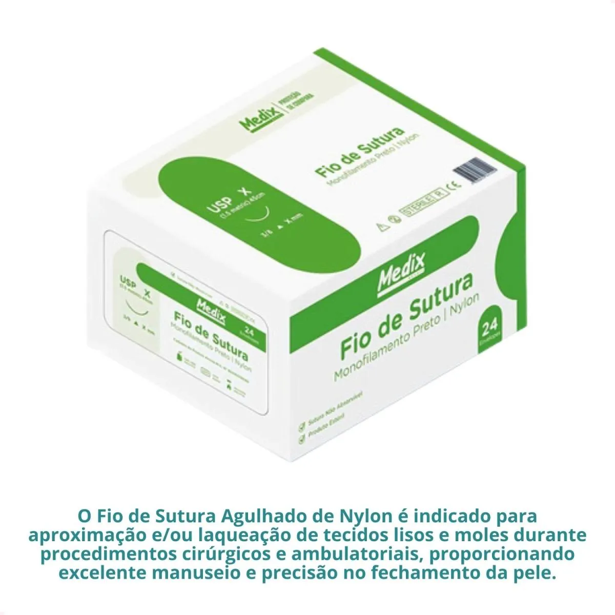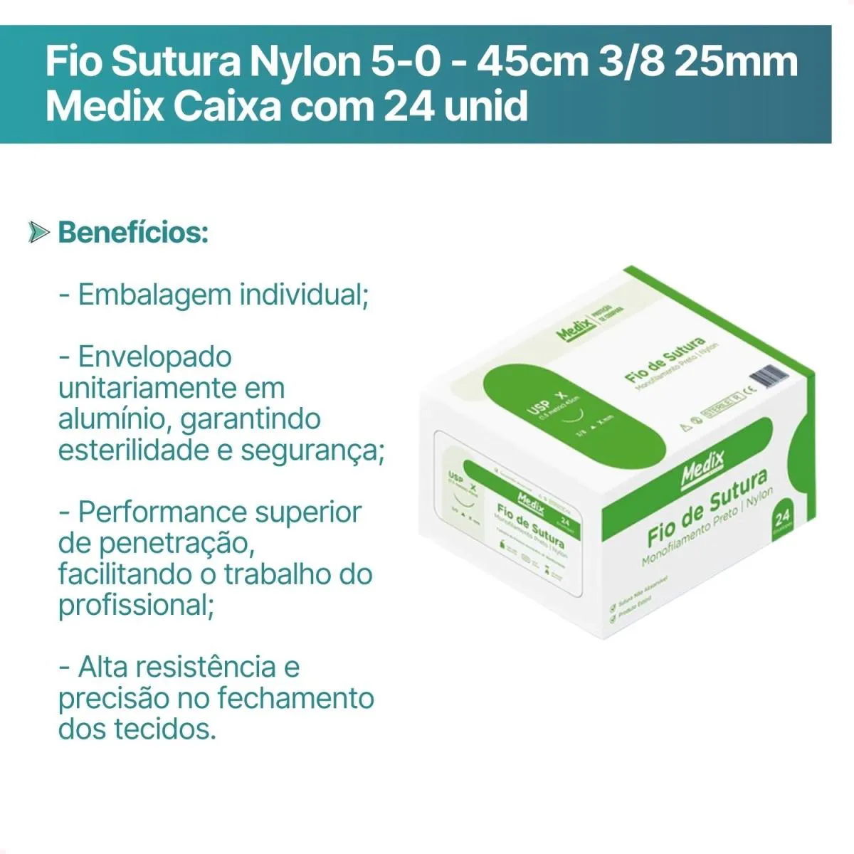 Fio de Sutura Nylon 5-0 ? 45cm 3/8 25mm Medix ? Caixa com 24 unidades