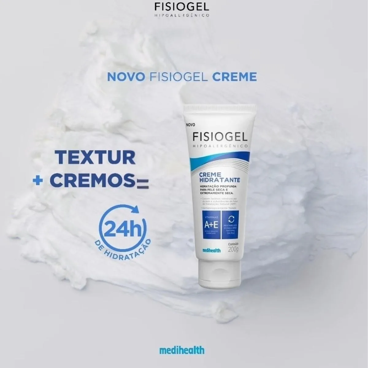 Fisiogel Creme hidratante Pele Seca e Extremamente Seca 200g O Creme Hidratante Fisiogel foi desenvolvido especialmente para peles secas e extremamente secas, proporcionando hidratação intensa e prolongada. Sua fórmula ajuda a restaurar a barreira cutânea, aliviando a sensação de ressecamento e desconforto. Características: