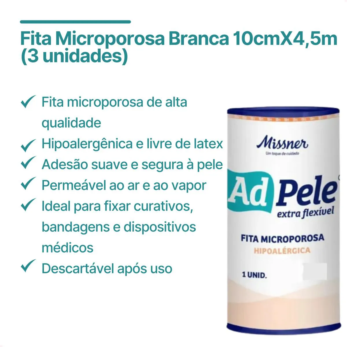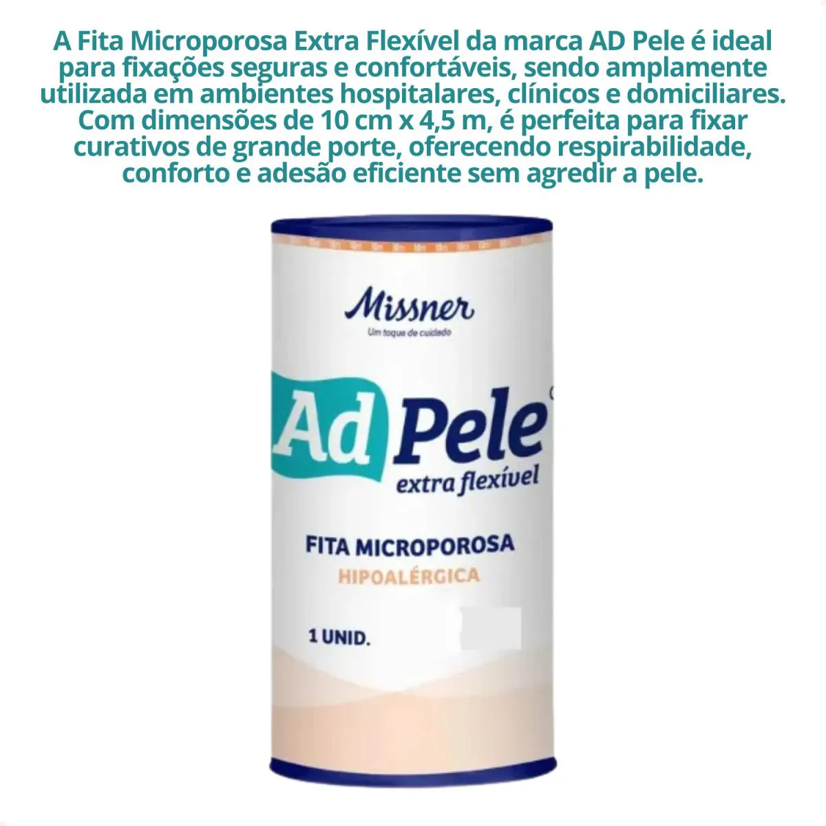 A Fita Microporosa Extra Flexível da marca AD Pele é ideal para fixações seguras e confortáveis, sendo amplamente utilizada em ambientes hospitalares, clínicos e domiciliares. Com dimensões de 10 cm x 4,5 m, é perfeita para fixar curativos de grande porte, oferecendo respirabilidade, conforto e adesão eficiente sem agredir a pele.
