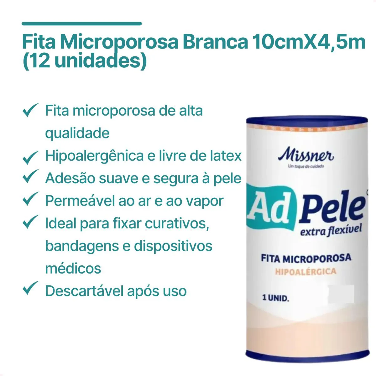 Fita Microporosa Hipoalérgica Branca 10cmx4,5m Adpele 12 Und - Envio Imediato