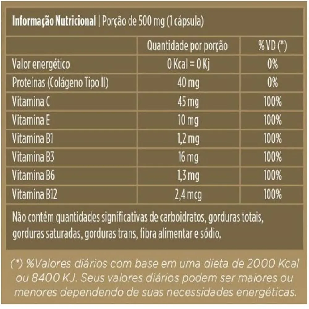 - Combina colágeno tipo 2 e vitaminas essenciais.