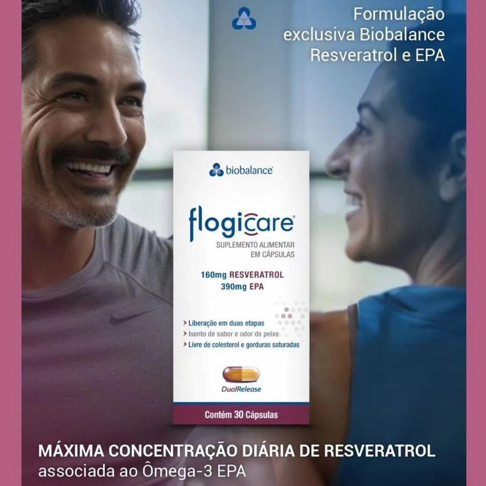 saúde e Bem-estarFlogicare não é apenas mais um novo suplemento alimentar no mercado mas uma revolução e inovação na manutenção da sua saúde e bem-estar.Com uma fórmula exclusiva que combina Resveratrol 160mg e Ômega-3 EPA 390mg, Flogicare oferece o que há de mais avançado e moderno em ciência nutricional diretamente para você e para toda a sua família.Essa combinação não somente promove um bem-estar integral, como também reforça seus esforços diários para manter um estilo de vida saudável.Nossa fórmula garante a máxima concentração diária permitida de resveratrol associada ao ômega-3 EPA, permitindo que seu corpo aproveite ao máximo de cada nutriente essencial em cada cápsula.O Flogicare foi desenvolvido para ser mais do que um suplemento alimentar, mas também um aliado em sua jornada rumo a uma vida mais saudável e equilibrada.Com tecnologia DualRelease, que garante na primeira etapa a liberação de resveratrol no estômago e na segunda etapa o EPA diretamente no intestino, evitando assim o desconforto gástrico e o retrogosto de peixe.Imagine combinar o poder do Resveratrol altamente concentrado com os benefícios do Ômega-3 EPA purificado em apenas uma única cápsula.Este é o Flogicare, com alta concentração de nutrientes essenciais para uma vida mais saudável e equilibrada em uma única cápsula.Adquira agora, seu Flogicare e tenha no seu dia a dia, o seu mais novo aliado na busca por uma vida plena e vibrante para um futuro mais saudável.Este produto não é um medicamento.