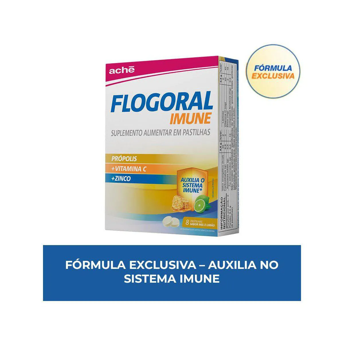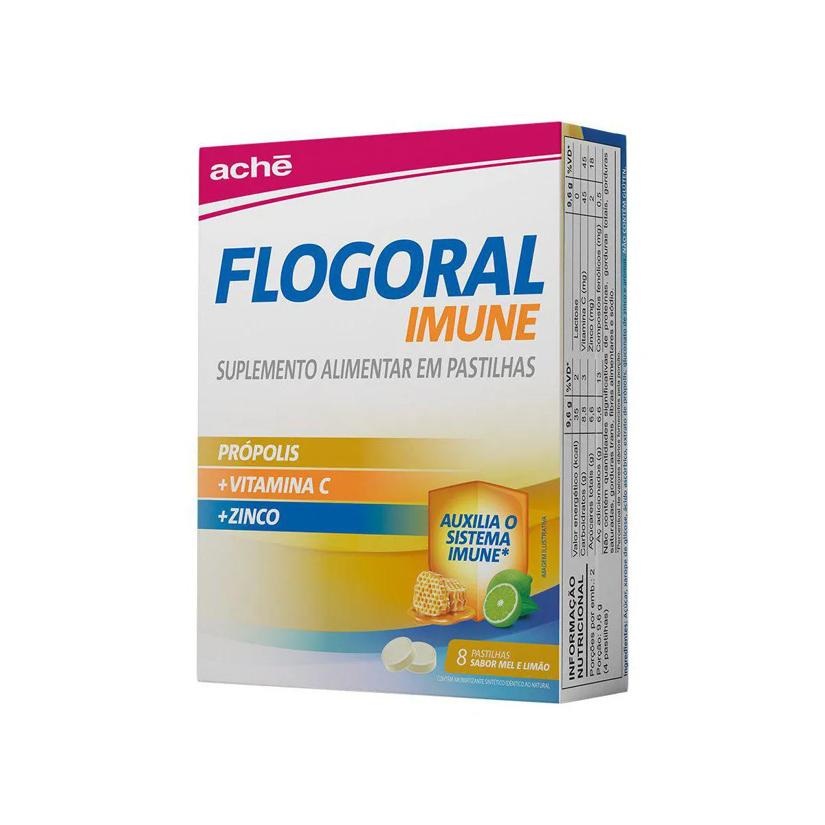 Pastilha Flogoral Imune Mel e Limão 8 Unidades