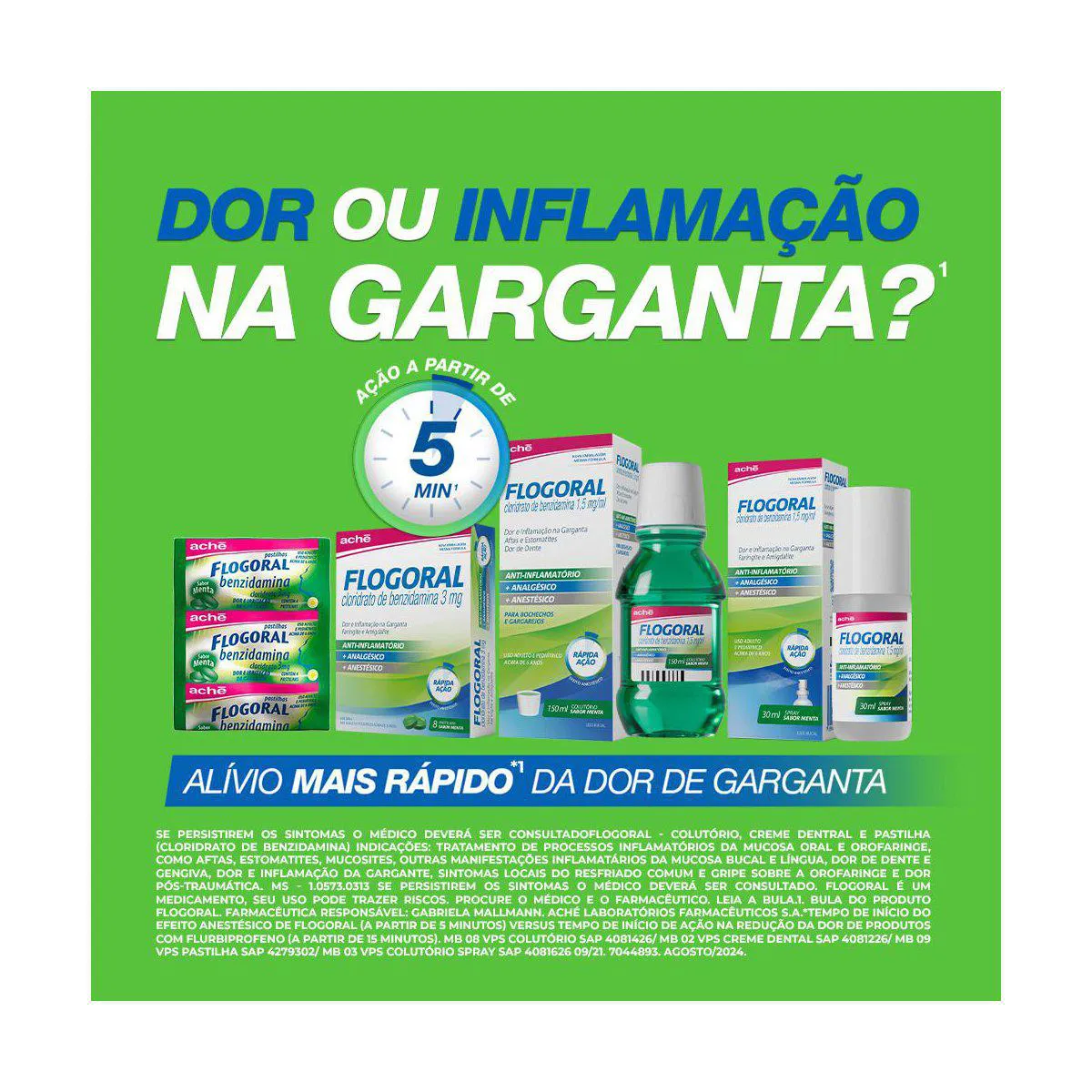Flogoral é um spray indicado para o tratamento de processos inflamatórios e dolorosos da boca e garganta. Sua fórmula apresenta propriedades anti-inflamatória, antisséptica, analgésica e anestésica, auxiliando em diversos tratamentos, como: