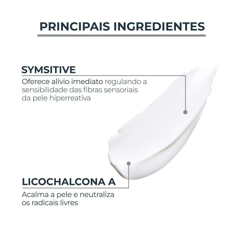 Além de proteger a pele contra os raios UVA através do FPS 30, proporciona alívio imediato, acalmando e neutralizando os radicais livres graças à sua combinação de Symsitive e Licochalcona A.