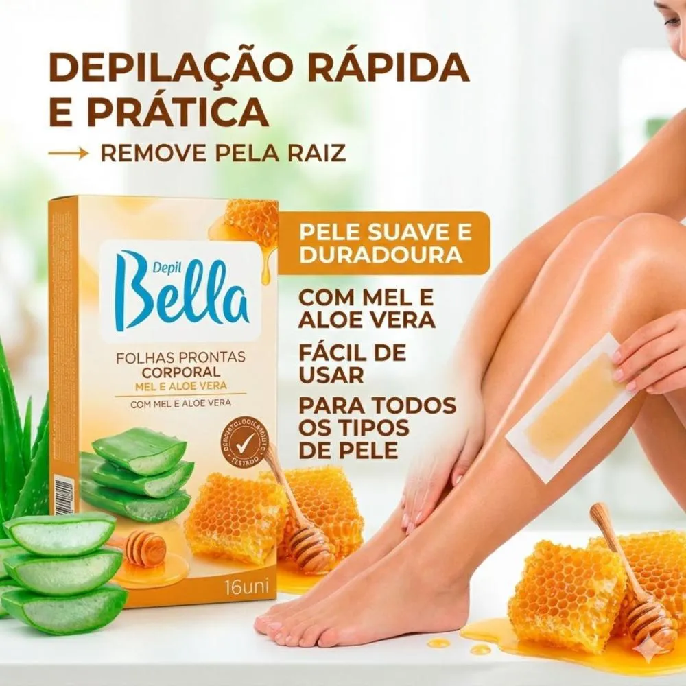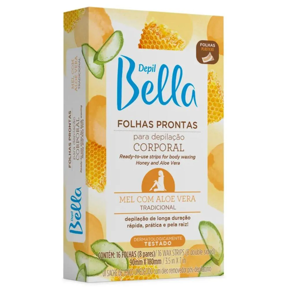 Folhas Prontas Corporal Mel e Aloe Vera Depil Bella 16Uni