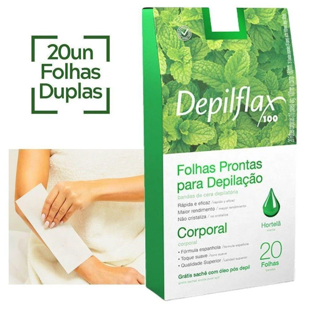 Folhas Prontas Para depilação Corporal Pernas Depilflax Hortelã 20un