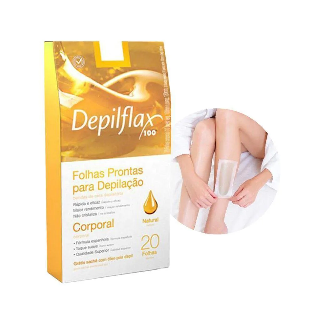 Folhas Prontas Para depilação Corporal Pernas Depilflax Natural 20un