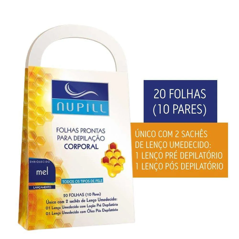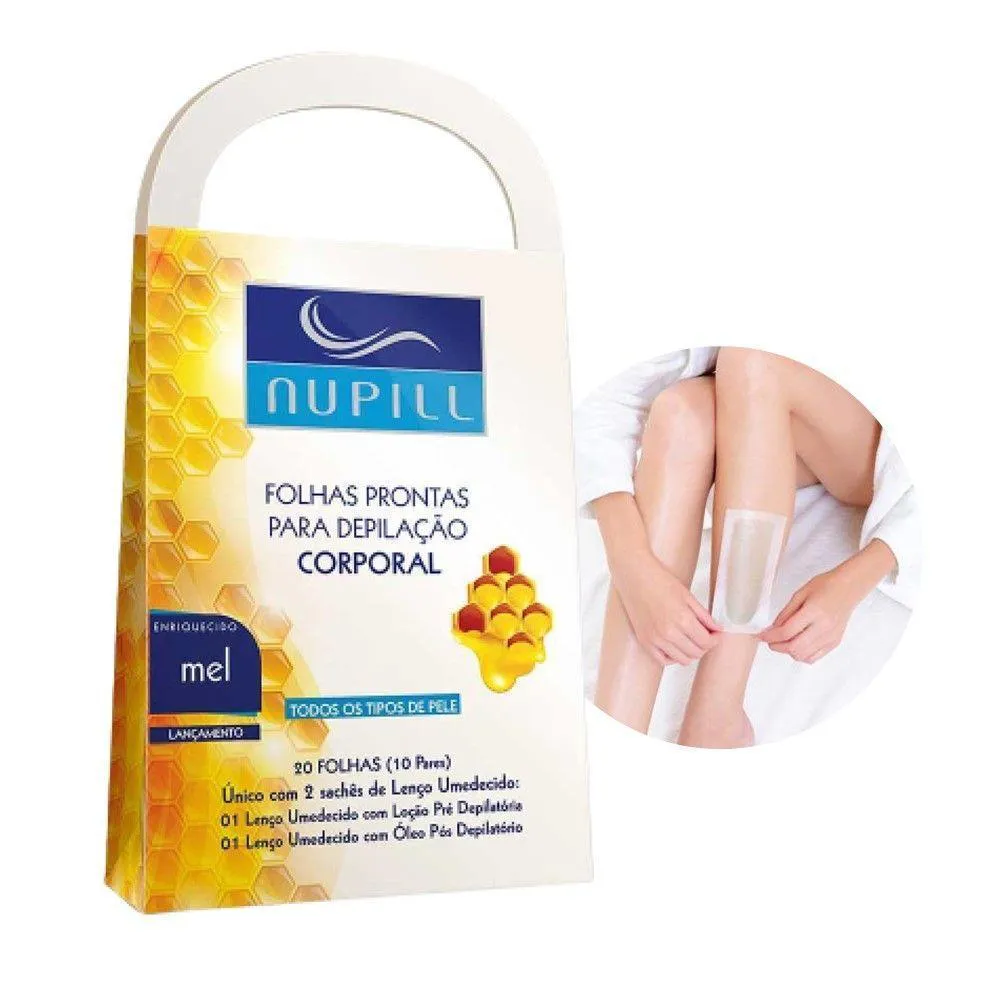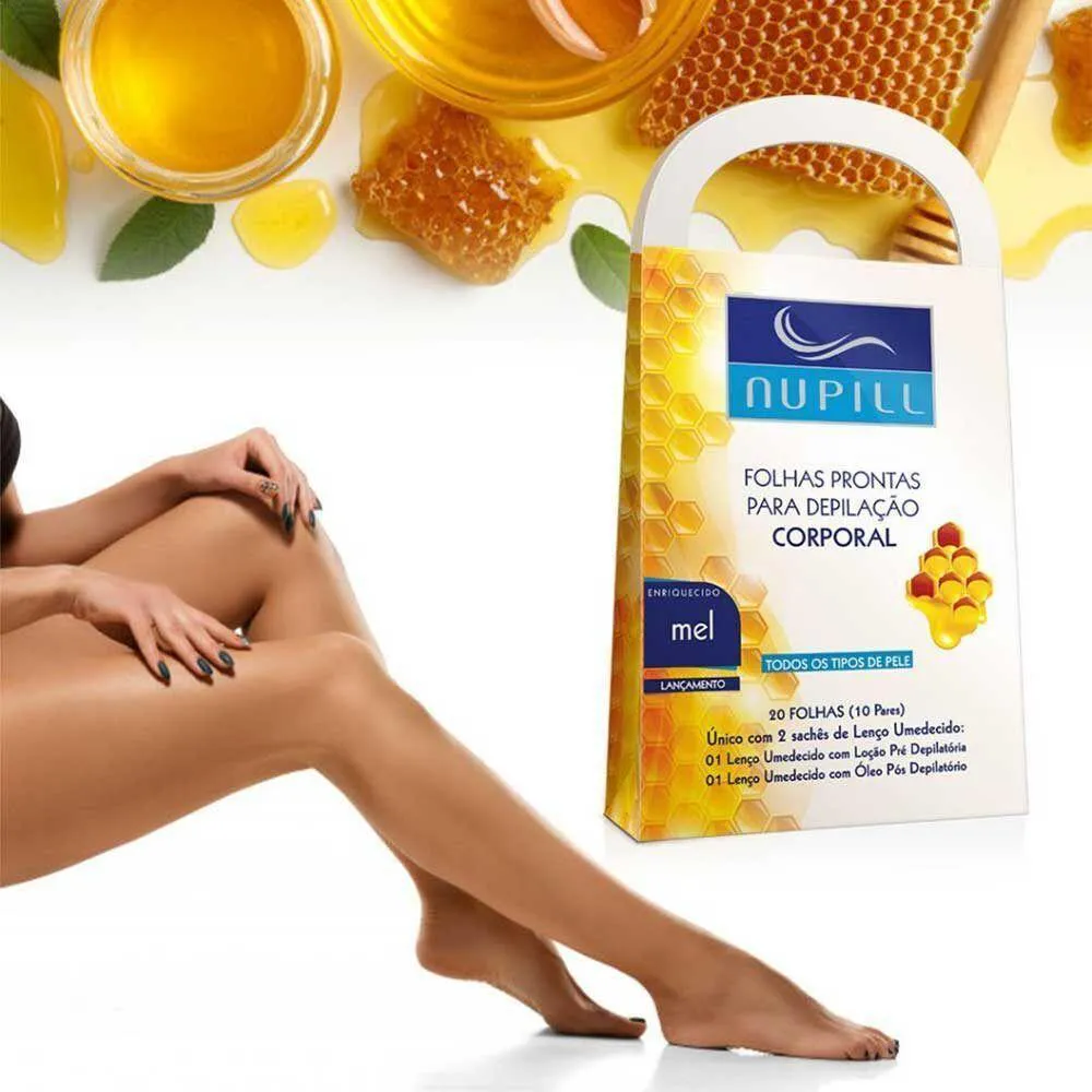 Folhas Prontas Para depilação Corporal Pernas Mel Nupill 20 Folhas