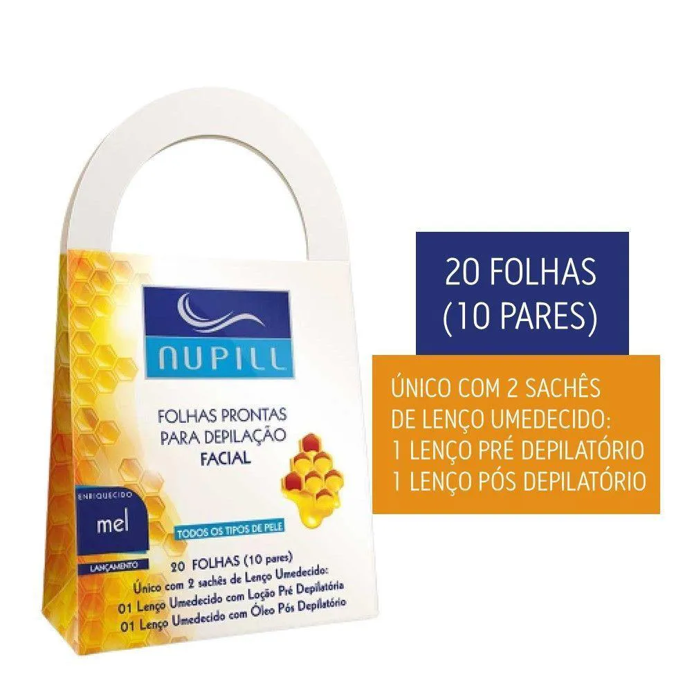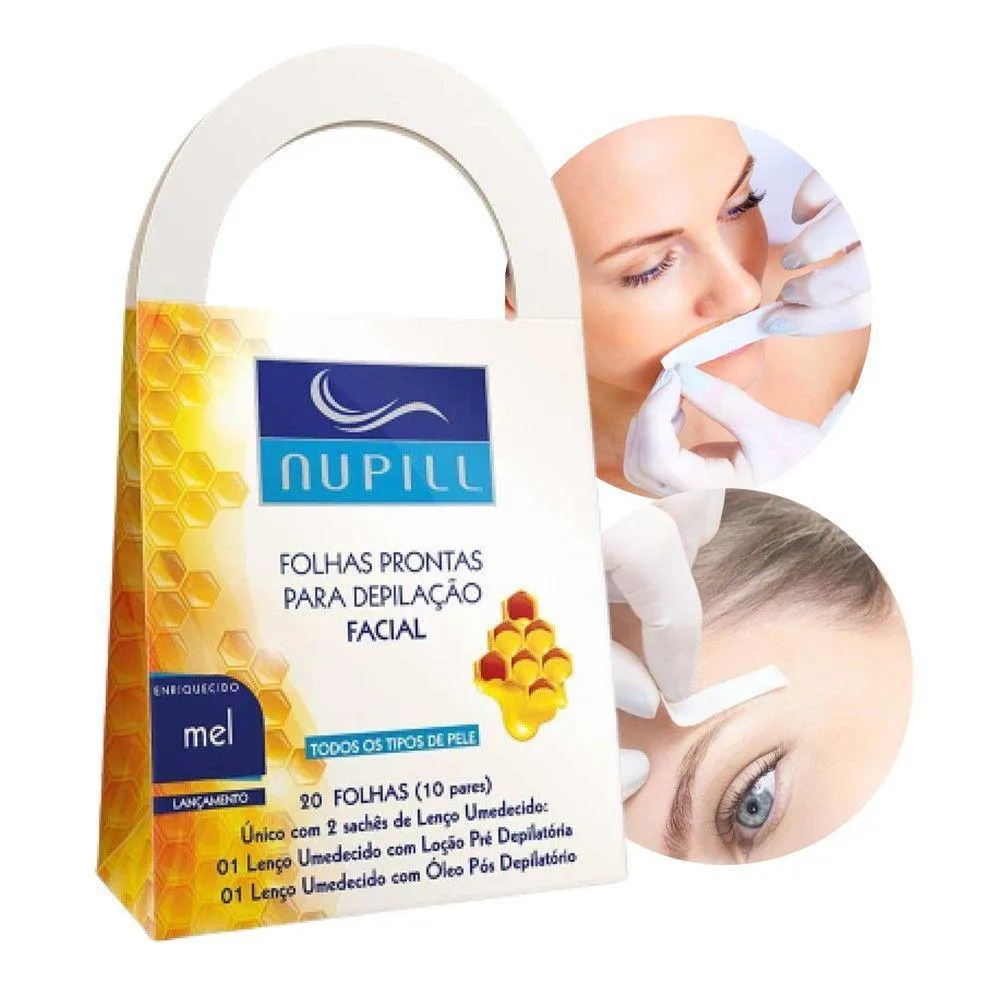 Folhas Prontas Para depilação Facial Buço Sobrancelha Mel Nupill 20 Folhas