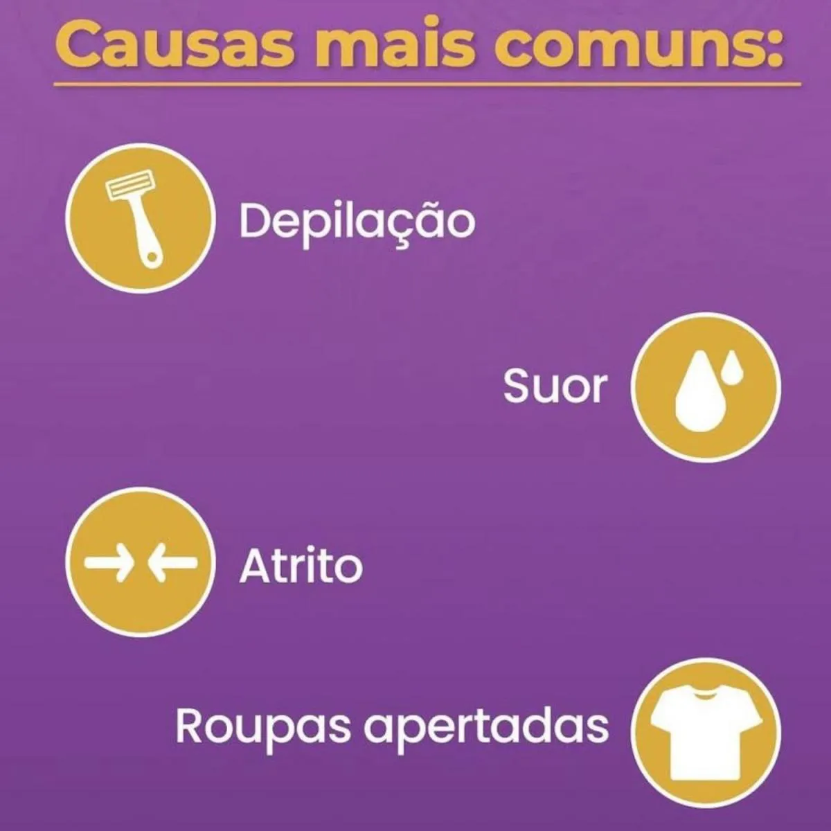 - Usar apenas externamente nas áreas indicadas: virilha, axilas, coxas e glúteos.