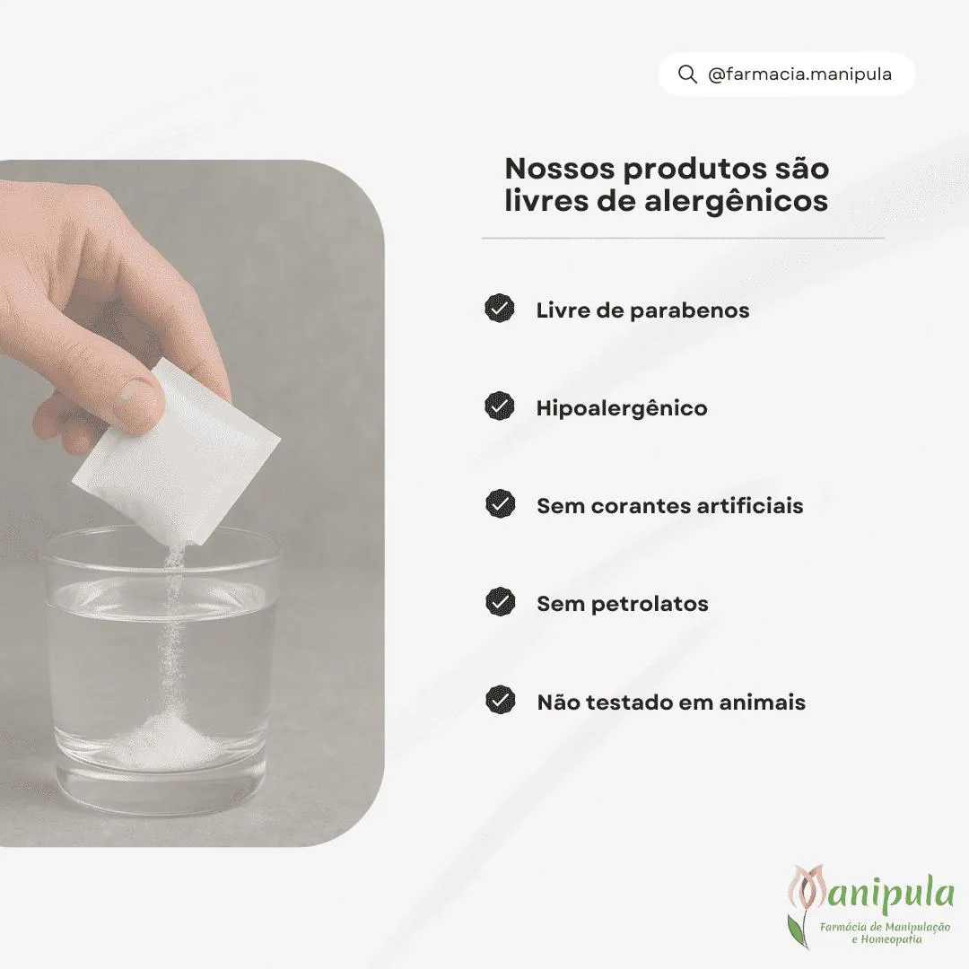 Não testado em animais Forma de usar: Ingerir 1 sachê diluido em água, 1 vez ao dia Composição: