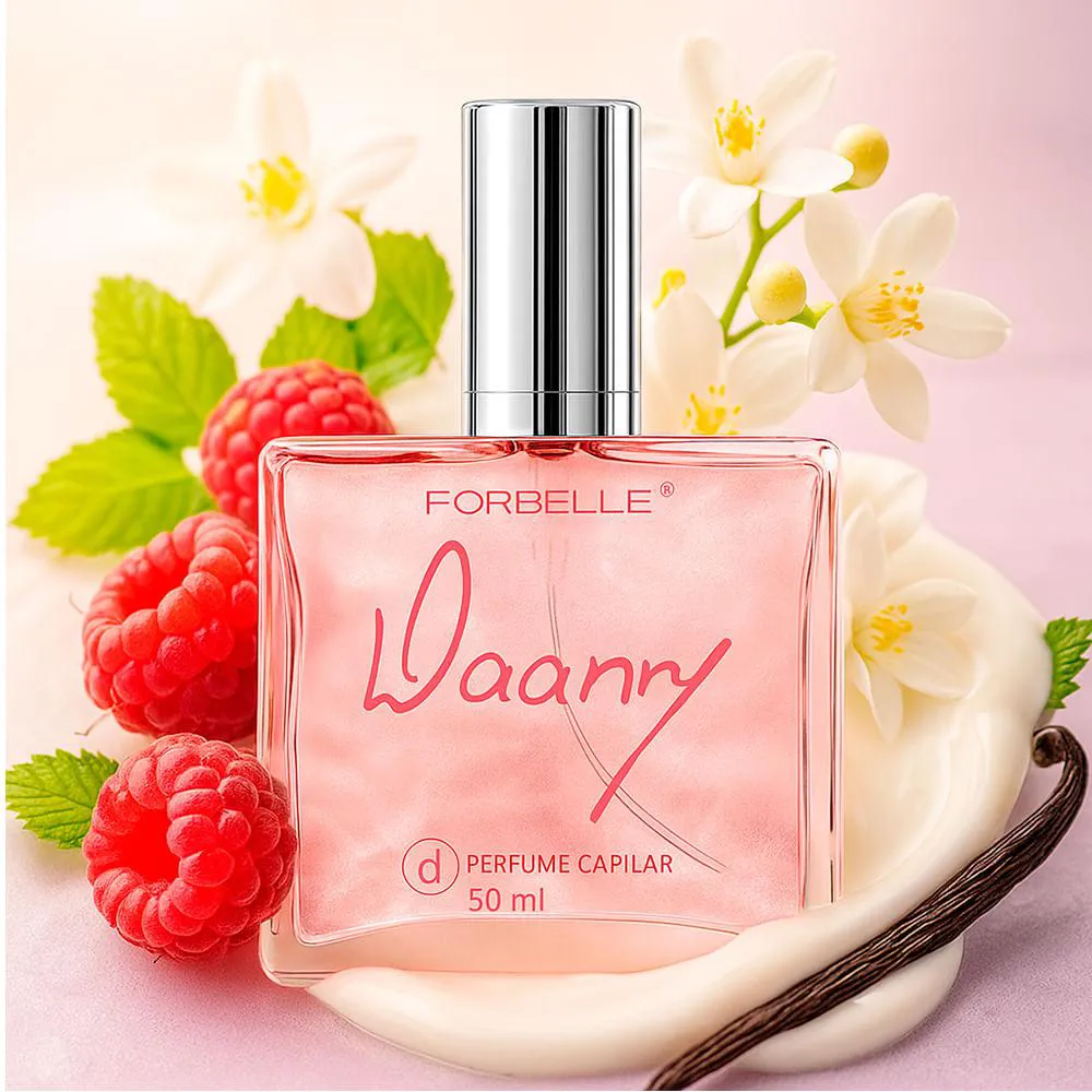 O Forbelle Professional Daanny Perfume Capilar 50ml é um perfume capilar unissex da família olfativa floral, desenvolvido pela Forbelle Profissional. Combina uma fragrância sofisticada com benefícios capilares, ideal para cabelos perfumados e bem cuidados. A composição abre com notas de topo de tangerina, bergamota e pêssego, trazendo frescor cítrico e frutado. No coração, jasmim, flor de laranjeira, ylang-ylang e tuberosa formam um buquê floral elegante e intenso. As notas de fundo, com baunilha, almíscar, sândalo e orris, oferecem um acabamento cremoso, quente e envolvente. Enriquecido com propriedades desembaraçantes, proteção térmica e neutralização de odores (como fumaça ou poluição), promove brilho, toque sedoso e efeito antiestático, sendo ideal para todos os tipos de cabelo. A fórmula leve não pesa, não resseca e é hipoalergênica. O frasco de 50ml, com design funcional e vaporizador, é prático para uso diário ou retoques. Vegano e cruelty-free, eleva a experiência capilar com sofisticação.