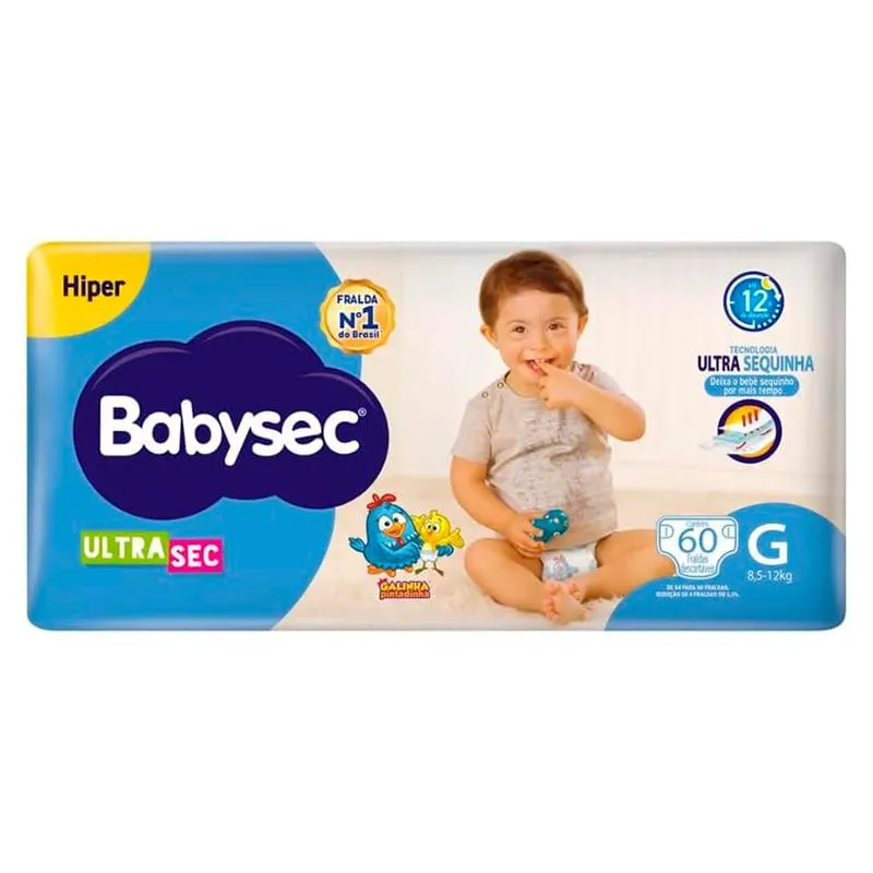 fralda BabySec Galinha Pintadinha Ultra Sec G 30 Unidades Descrição do produto Se você busca por produtos para bebês que transmitam proteção para o bebê e para os pais, além de cuidar com muito amor e carinho, aqui você encontra produtos com qualidade e ótimos preços. É fundamental que se invista em fraldas descartáveis de qualidade, que proporcionem conforto ao longo do dia e durante o sono tranquilo pela noite. As Fraldas Descartáveis Babysec Premium Galinha Pintadinha oferece proteção Dia e Noite por até 12 horas. As Fraldas Descartáveis Babysec Ultrasec da Galinha Pintadinha possuem cintura e orelha elástica, fechos reposicionáveis, cobertura ultra suave e camada externa tipo algodão. Também contém gel extra absorvente que evita vazamento de fezes ou urina, criando barreiras impermeáveis. As fraldas têm em sua composição Aloe Vera e vitamina e, garantindo segurança contra assaduras e hidratação no bumbum do bebê. O pacote contém 16 fraldas descartáveis, tamanho G para bebês de 8,5 a 12 Kg. A Babysec é uma marca que oferece proteção, conforto e muita segurança ao longo do dia. Imagens Meramente Ilustrativas. Todas as Informações Divulgadas são de Responsabilidade Exclusiva do Fabricante/fornecedor.