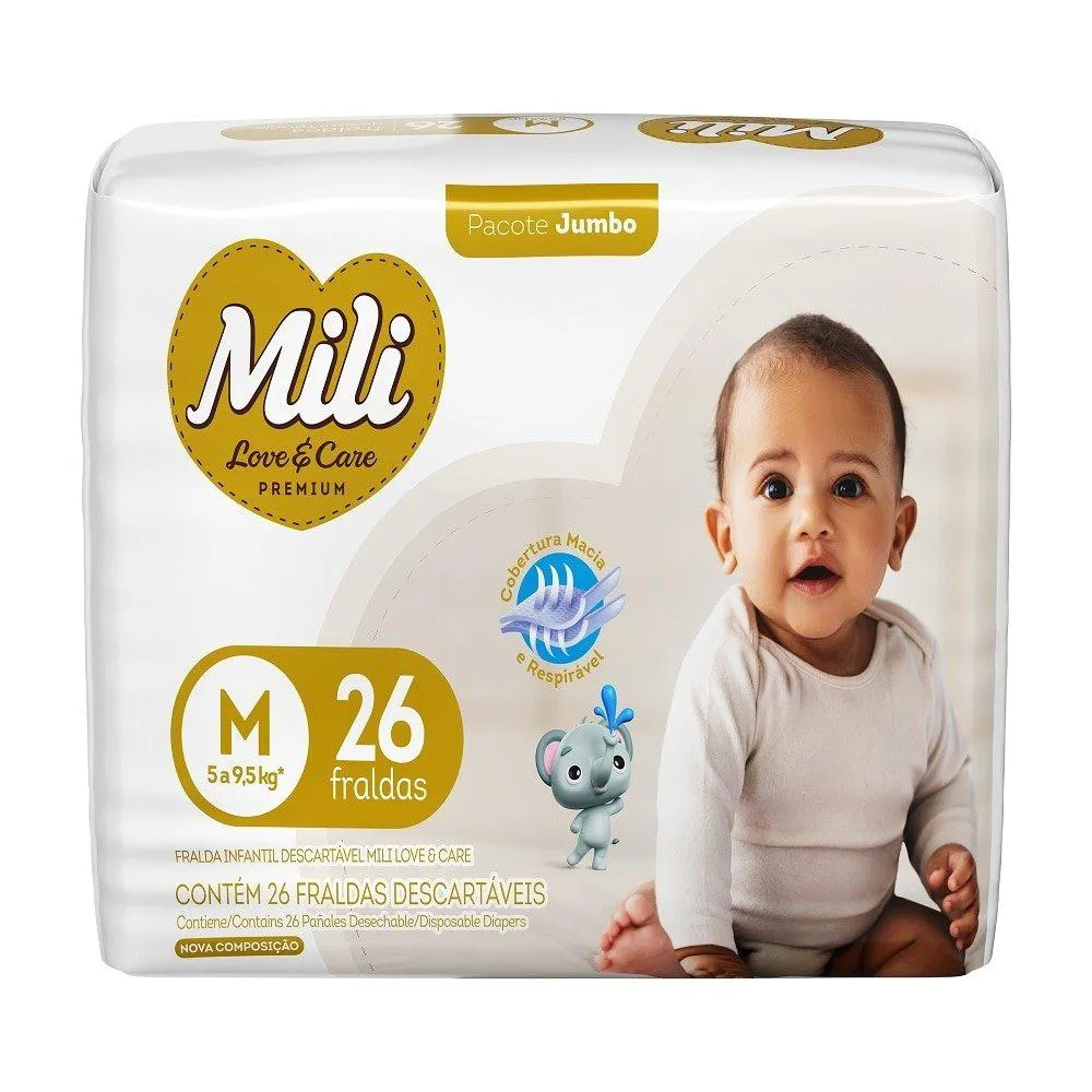 Fralda Descartavel Mili Love&care Jumbo Tamanho M - 9 Pacotes com 26 Fraldas