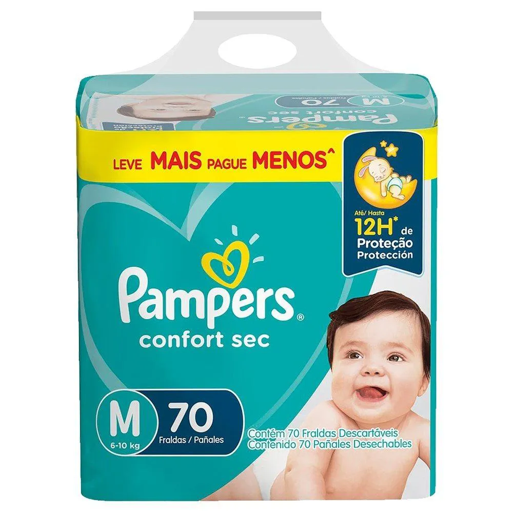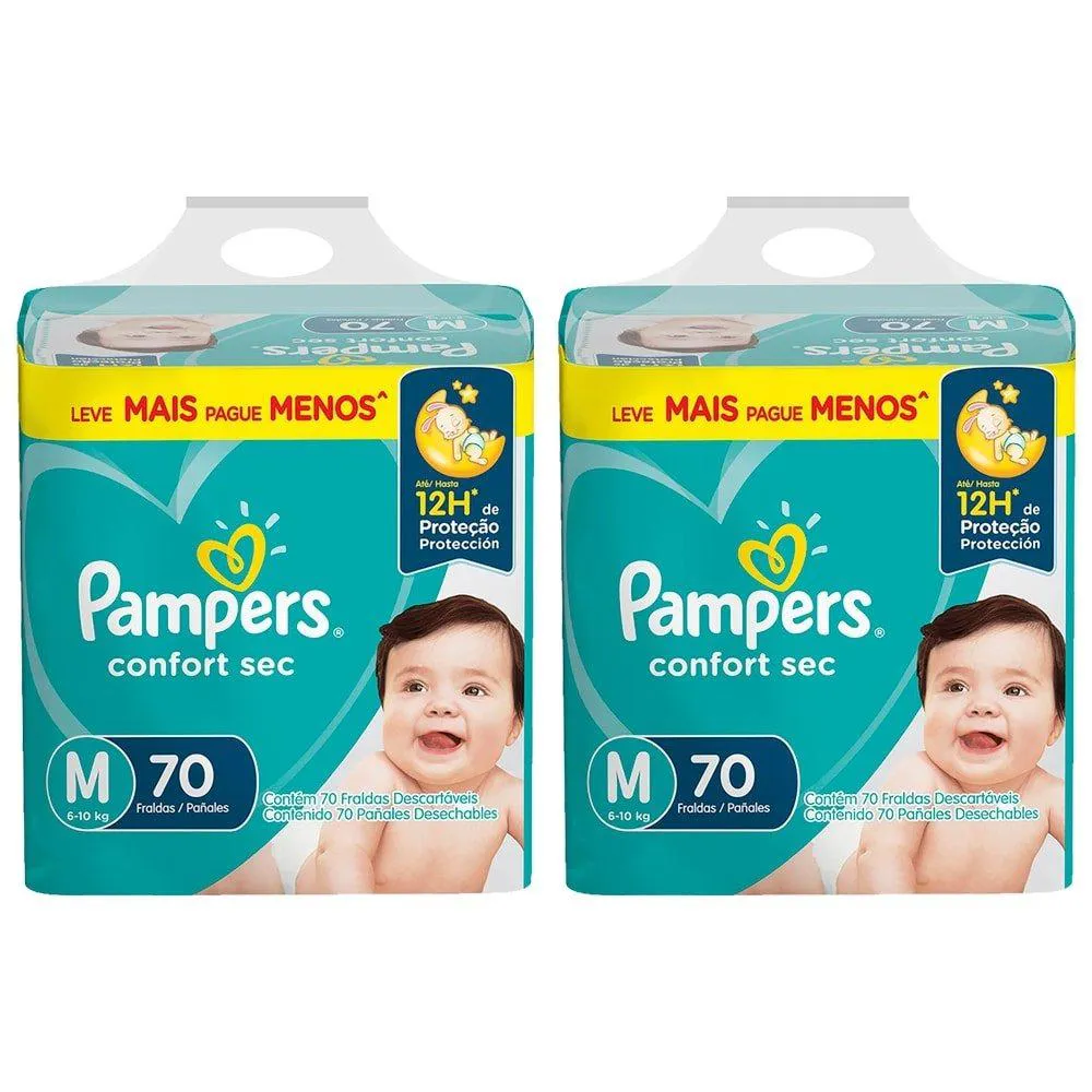 Fralda Descartável Pampers Confort Sec Super Tamanho M - 2 Pacotes com 70 Fraldas - 140 Total Tiras