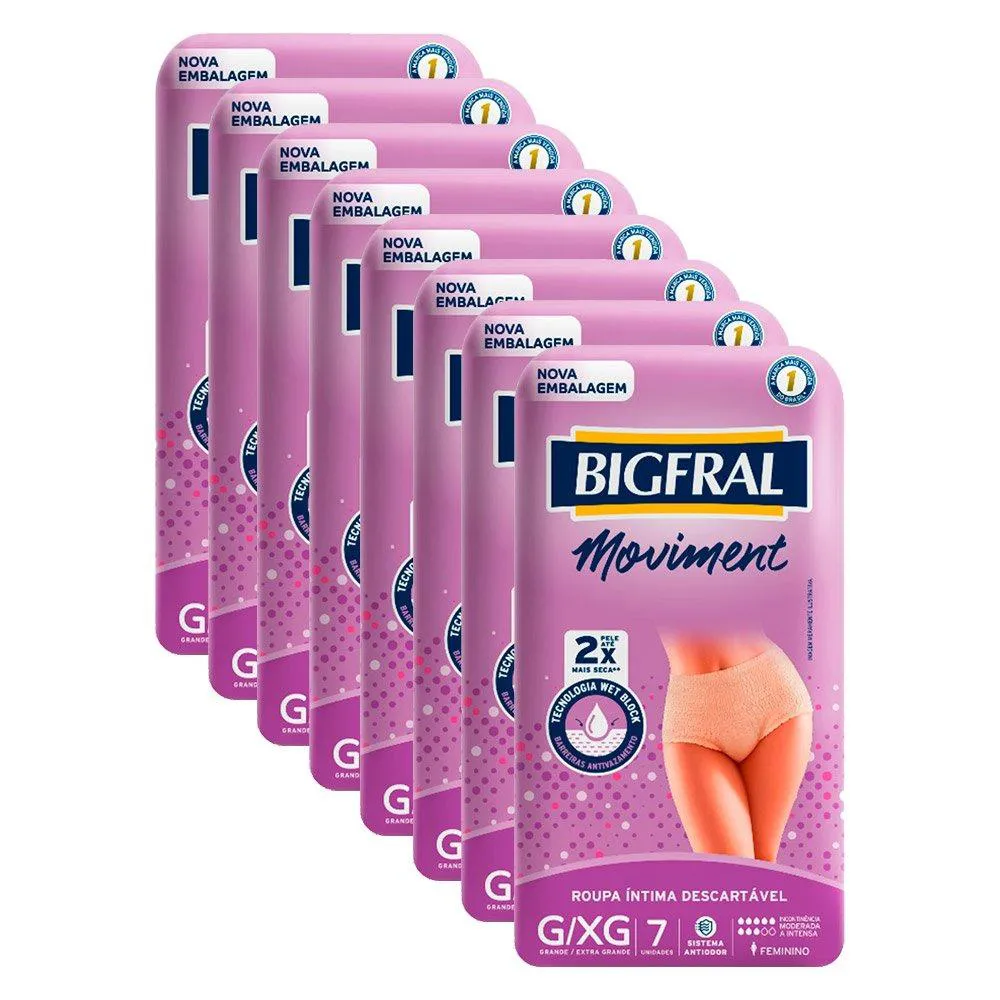 Fralda Geriátrica Bigfral Moviment Feminino Tamanho G/Xg - 8 Pacotes com 7 Fraldas - Total 56 Tiras