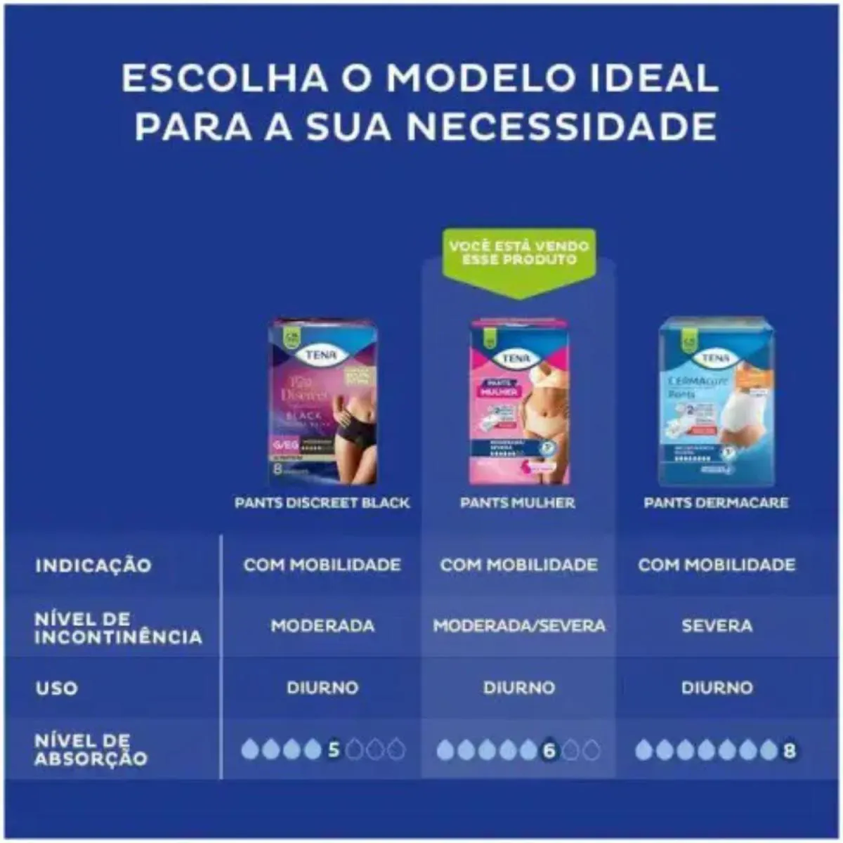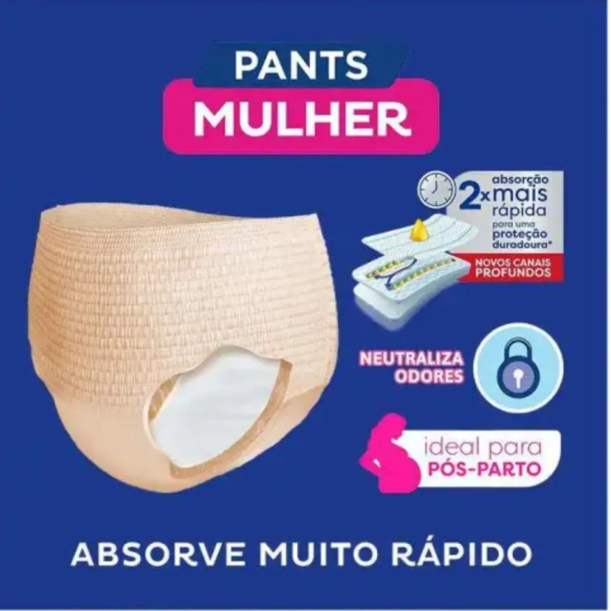 - Modelo pants (tipo calcinha), fácil de vestir e retirar