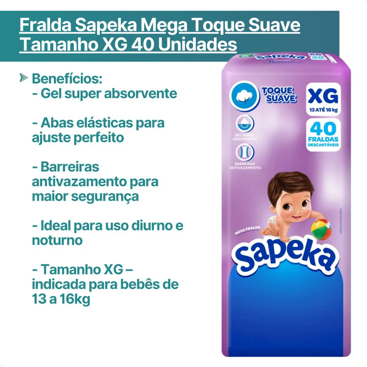Fralda Infantil Sapeka Mega Xg Pacote com 40 Un. Descartavel