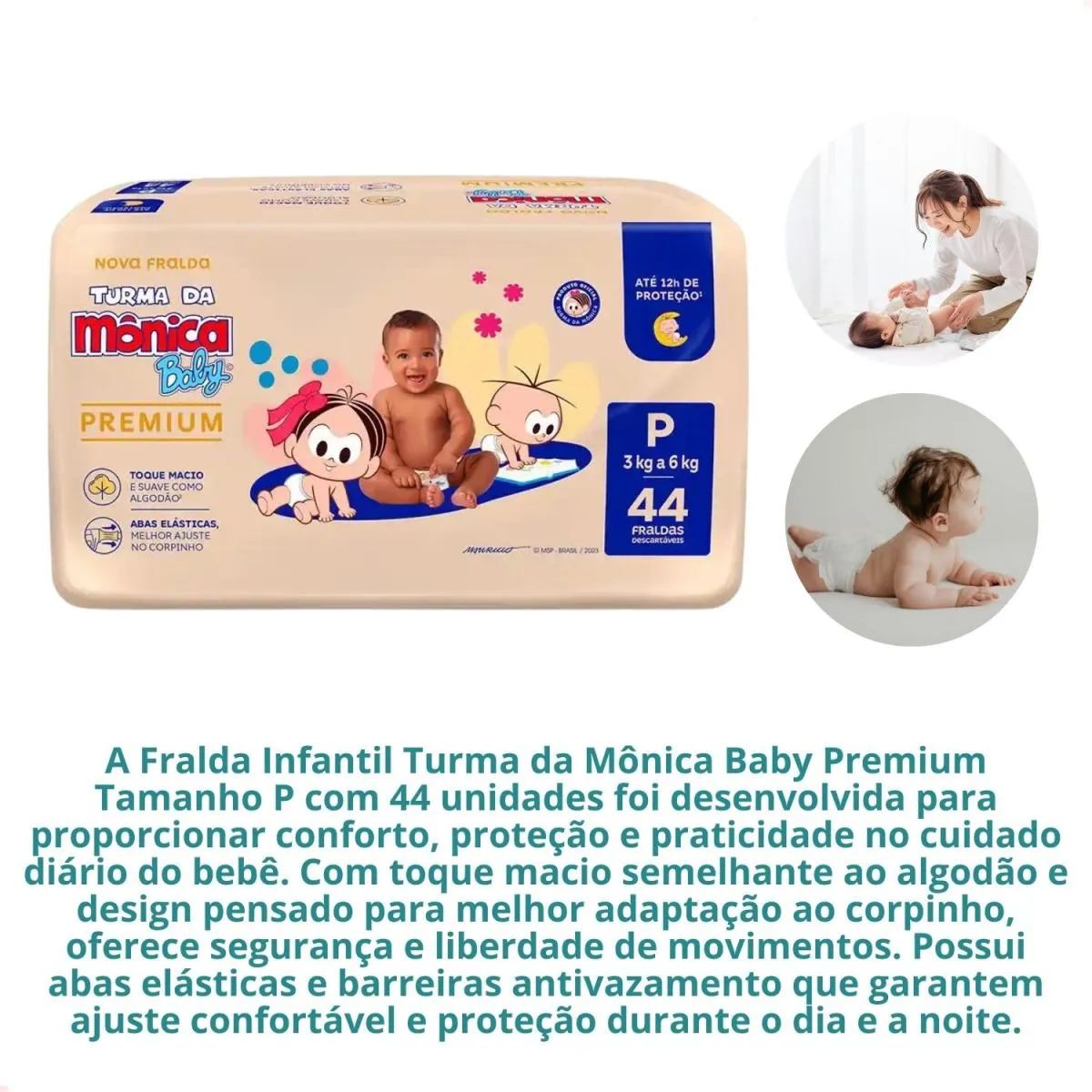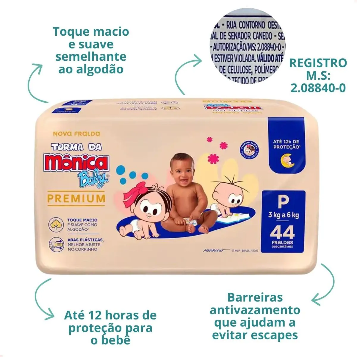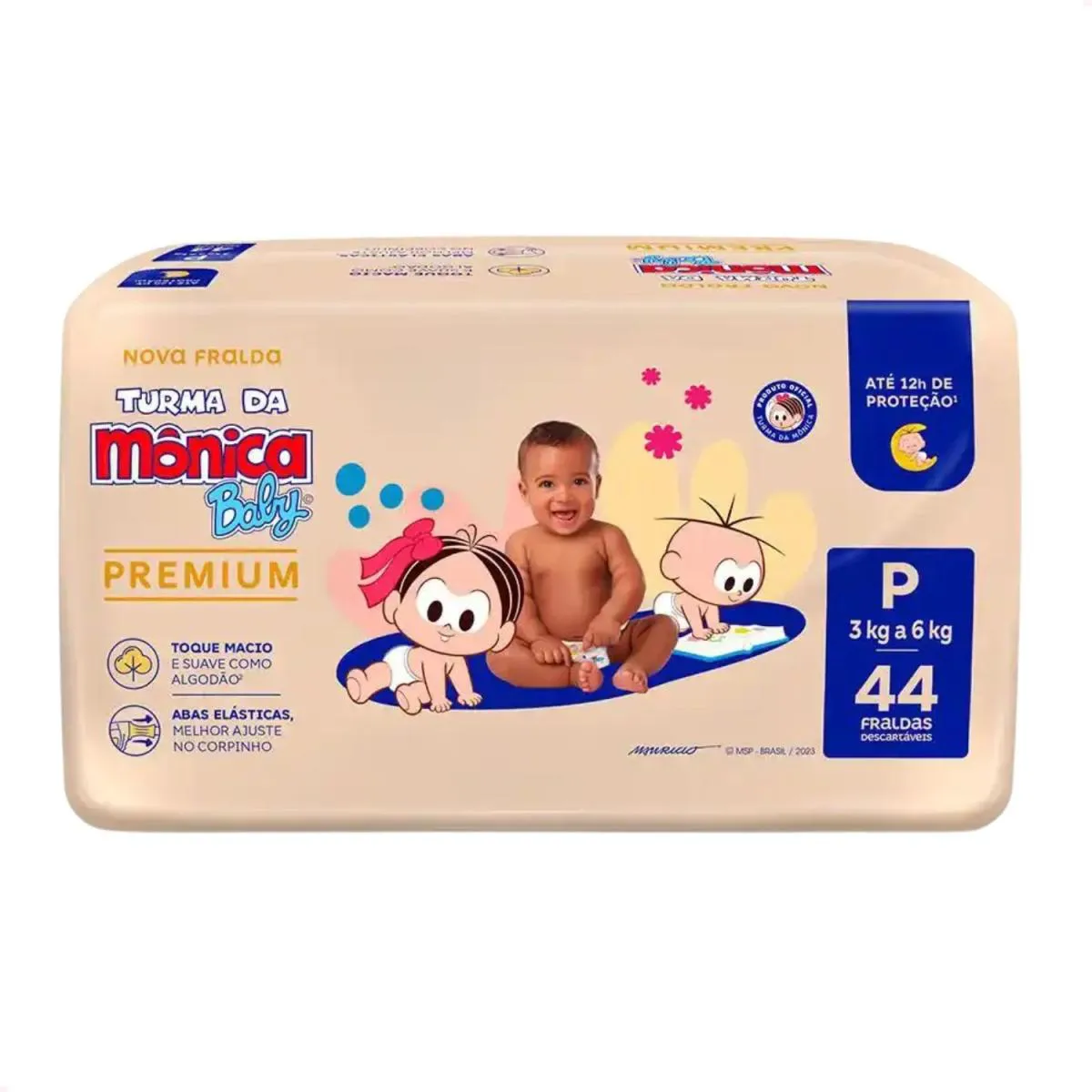 fralda infantil Turma da Monica Premium Tam P c/ 44 unidades