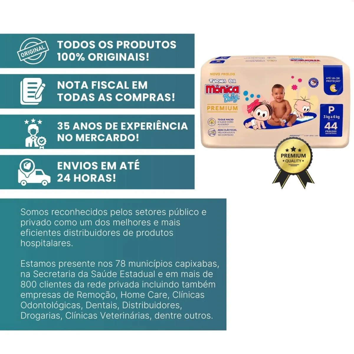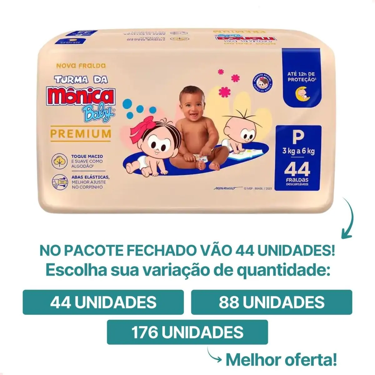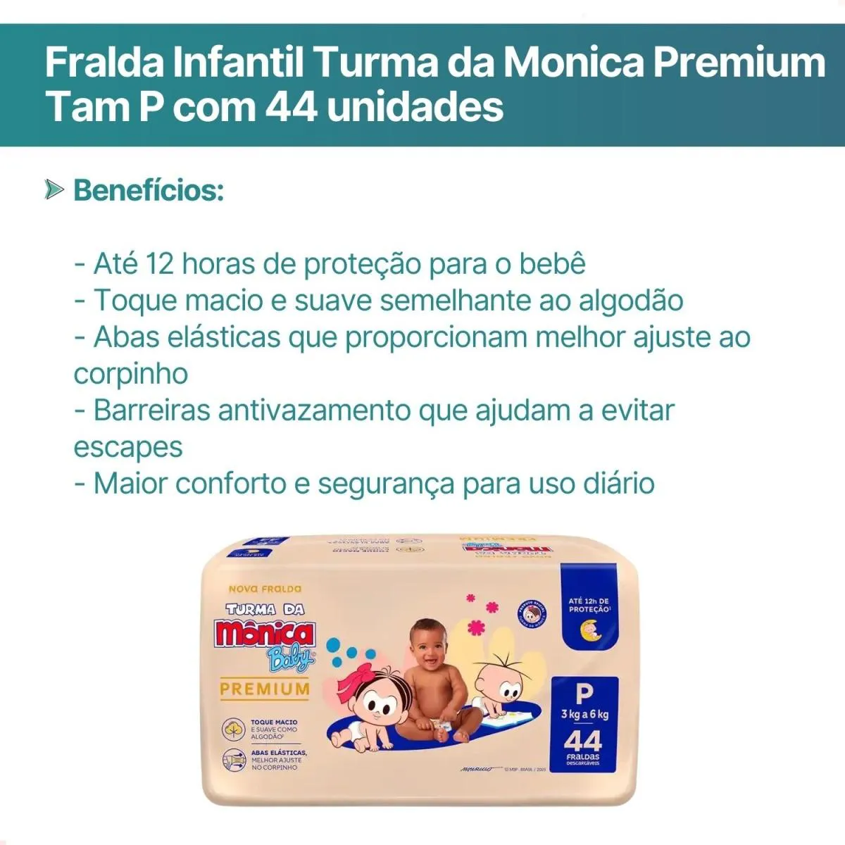 fralda infantil Turma da Monica Premium Tam P c/ 44 unidades