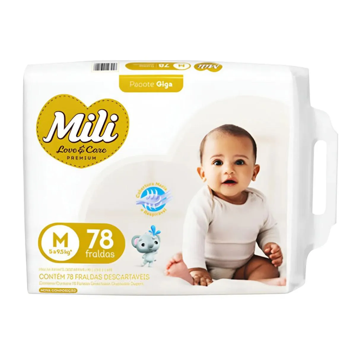 fralda Love & Care Premium M com 78 Unidades – Mili