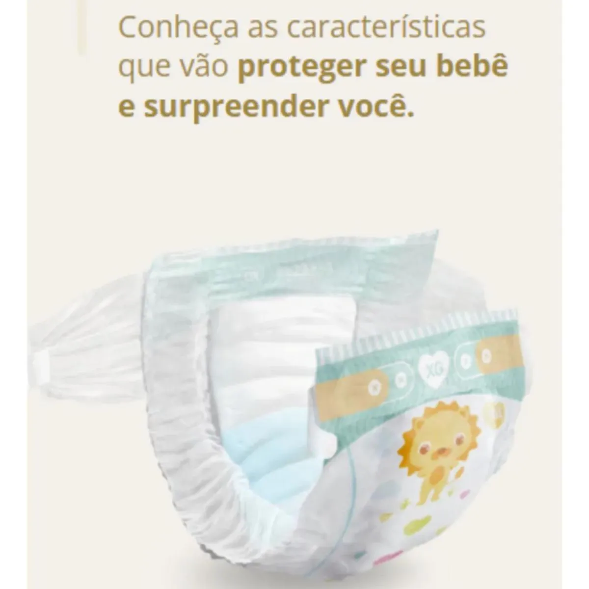 - Proteção prolongada com até 6 camadas de barreiras que mantêm o bebê seco por até 12 horas