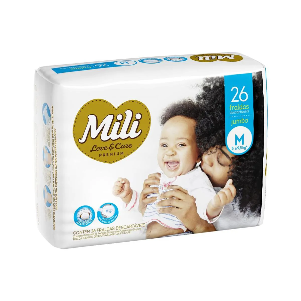 Fralda Mili Love Care Premim Jumbo M 26 Unidades
