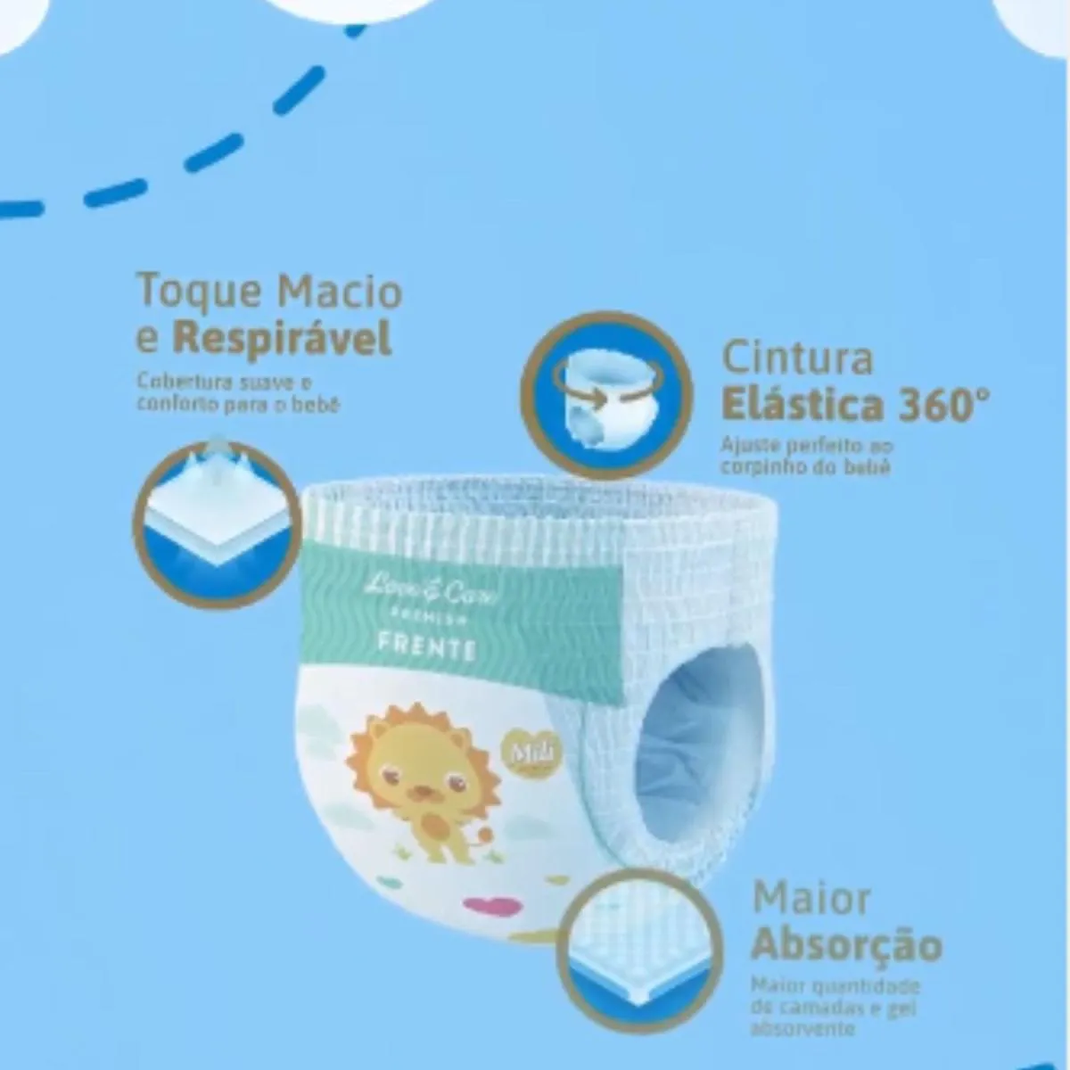Destaques da Fralda Pants Mili Love&Care:Cintura Elástica 360°: Proporciona um ajuste perfeito ao corpinho do bebê, facilitando o vestir e permitindo liberdade total de movimentos.