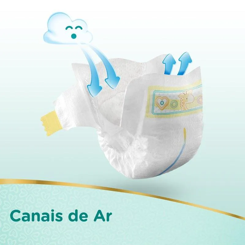 Pampers Recém-Nascido Premium Care, nossa proteção mais suave para sua pele. Tem uma Malha algodão-Sec° exclusiva, que afasta o cocô líquido da pele do seu bebê, e também possui um indicador de umidade que te ajuda a saber a hora certa de trocar. • Suave como algodão°: a proteção mais suave da Pampers °Não contém fibras de algodão