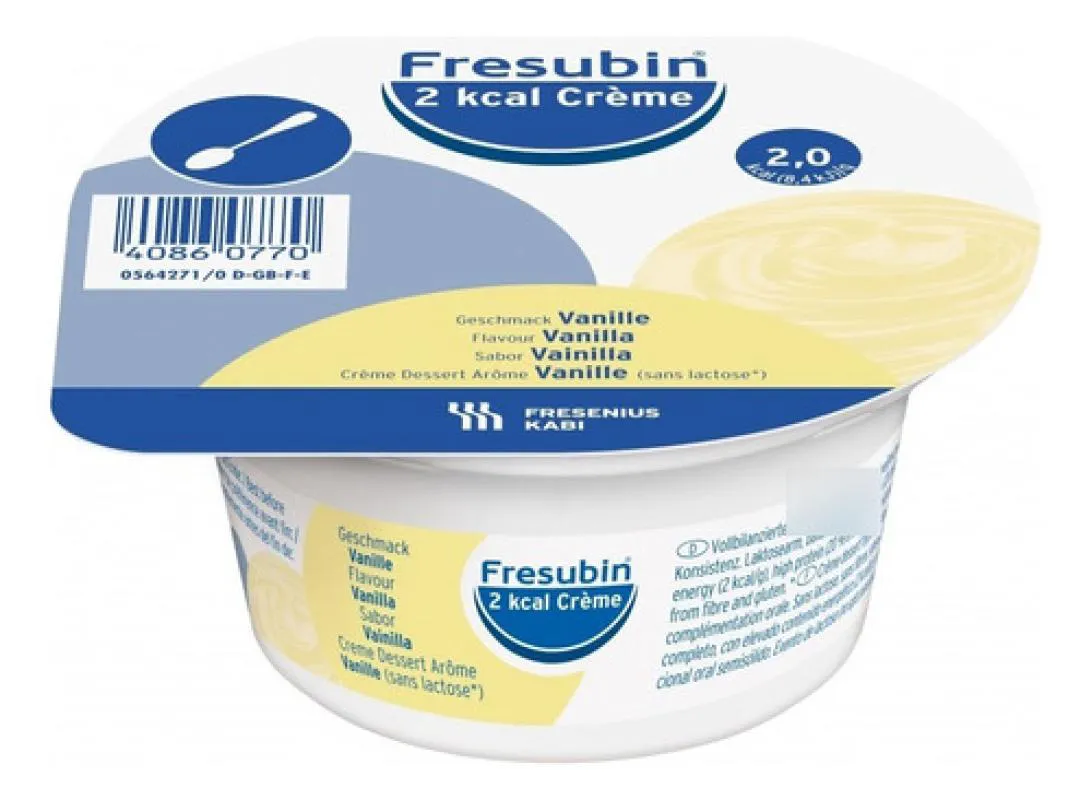 Fresubin 2 Kcal Creme é um suplemento nutricional oral espessado, pronto para uso, nutricionalmente completo e hipercalórico, indicado para idosos e pacientes com disfagia. Possui distribuição calórica de 20% de proteína (caseína e proteína do soro de leite), 45% de carboidrato (maltodextrina e sacarose) e 35% de lipídio (óleo de canola e óleo de girassol), atendendo à recomendação de uma textura C (pudim/purê): pastoso grosso, homogêneo e liso, sem presença de grumos ou pedaços de alimentos. Isento de lactose e glúten. Indicado para pacientes idosos e/ou com disfagia, complicações nutricionais e respiratórias associadas à disfagia orofaríngea, distúrbio da deglutição associado a desordens neurológicas, mecânica e envelhecimento. Benefícios: Suplemento de consistência pastosa de fácil deglutição, alto concentração calórica e proteica, adequado para pacientes com disfagia e restrição hídrica. Sugestão de Consumo: Consumir 1 a 2 unidades por dia ou conforme orientação do nutricionista ou médico. Dica do Nutricionista: Pode ser refrigerado e consumido gelado como uma sobremesa. Conservação: Manter as embalagens fechadas em temperatura ambiente, em local fresco e seco. Após aberto, conservar até 24 horas em geladeira e 6 horas em temperatura ambiente.