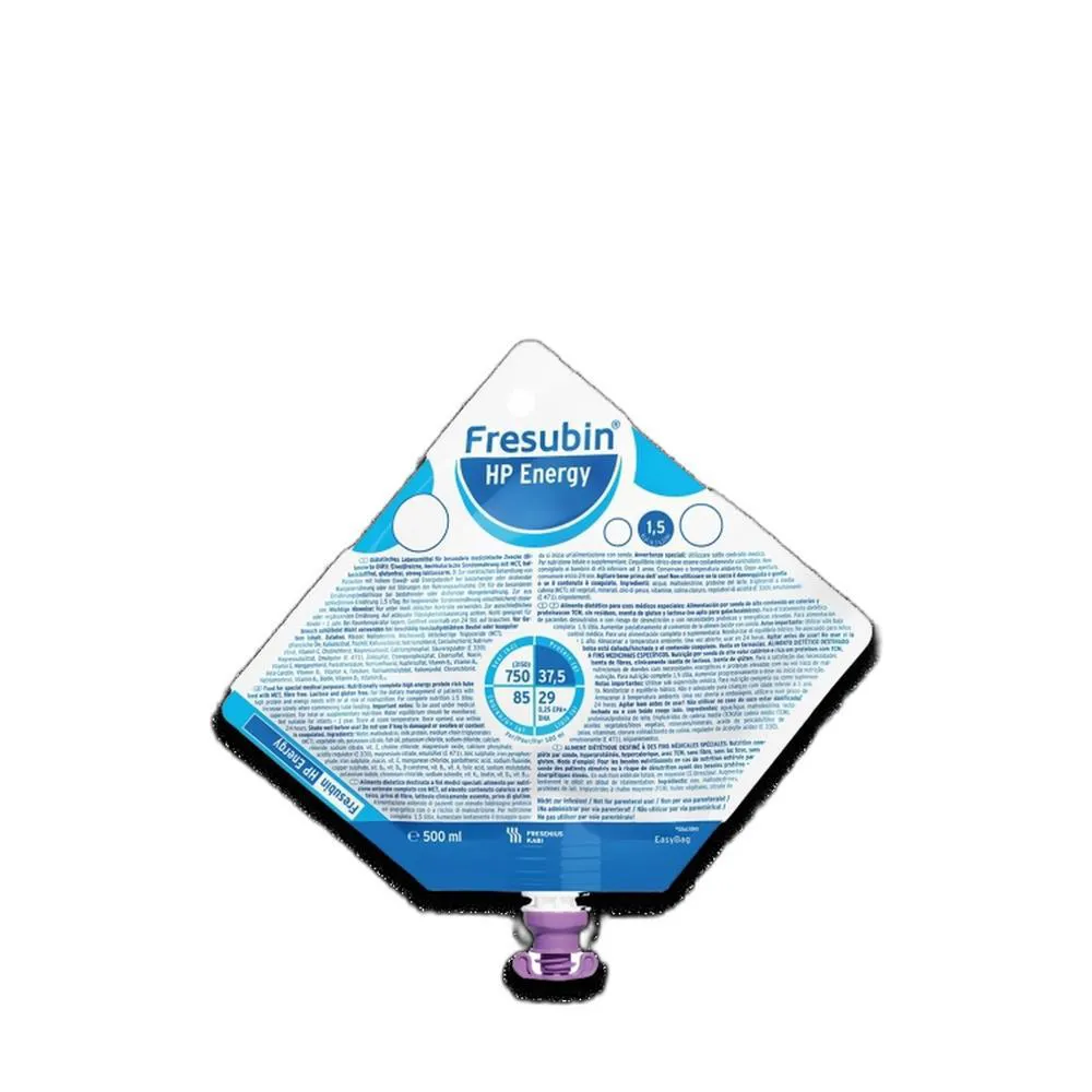Fresubin HP Energy é uma dieta enteral líquida, polimérica, nutricionalmente completa, hipercalórica (1,5 Kcal/ml) e hiperproteica. Com 20% de proteína (caseinato e proteína do soro do leite), 45% de carboidrato (maltodextrina) e 35% de lipídio (TCM, óleo de