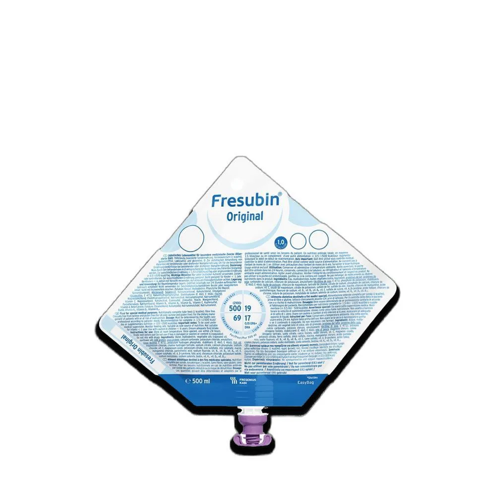 Fresubin Original é uma dieta enteral líquida, polimérica, nutricionalmente completa, normocalórica (1 Kcal/ml). Com 15% de proteína (caseinato e proteína isolada de