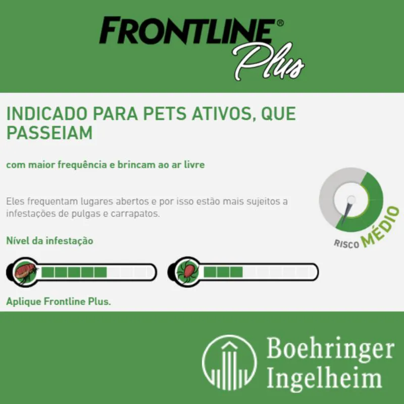 Frontline® Plus é formulado especificamente para cães e gatos. Não deve ser usado em outras espécies de animais. Para outros pets, existem produtos específicos que garantem segurança e eficácia. Sempre consulte um veterinário para escolher o tratamento correto.