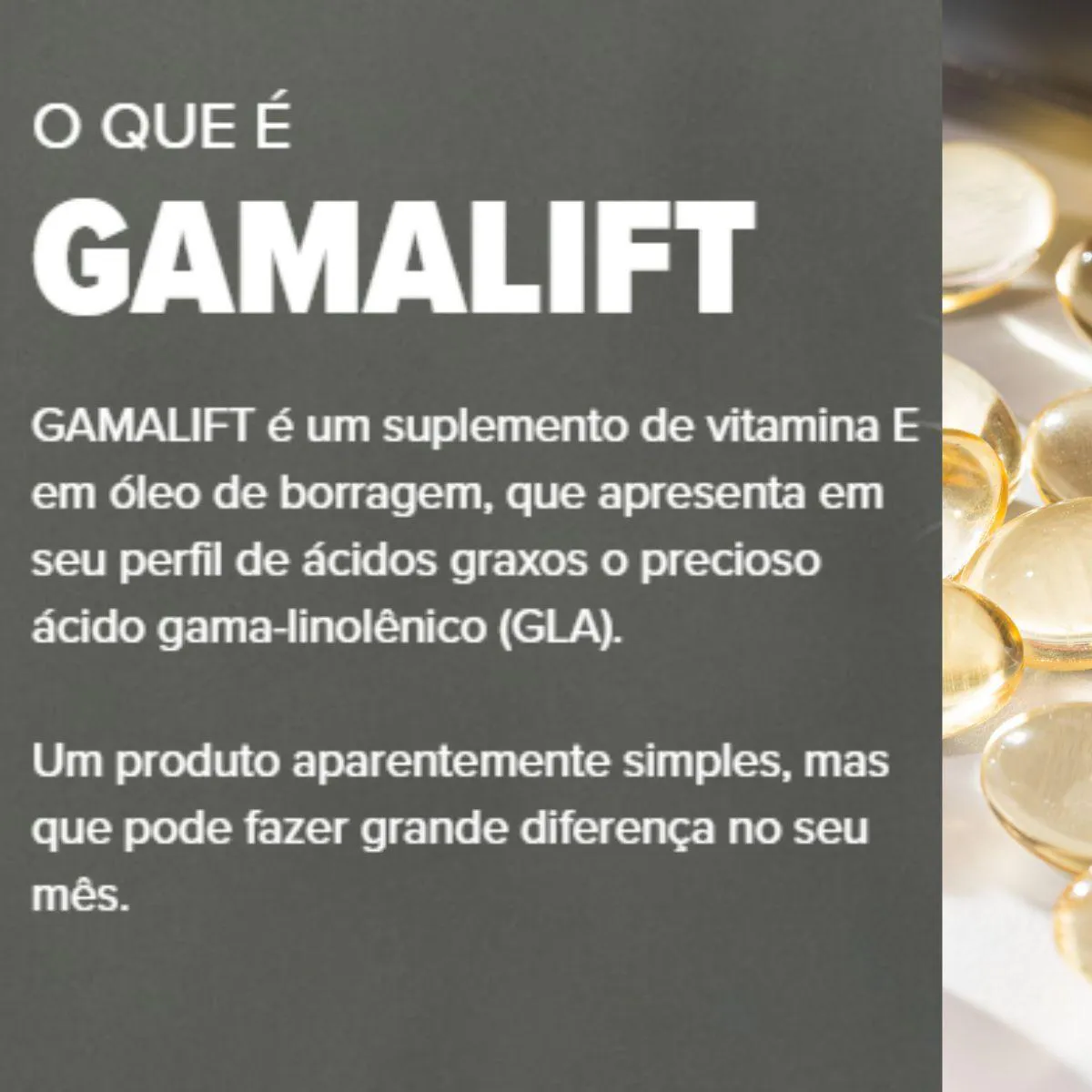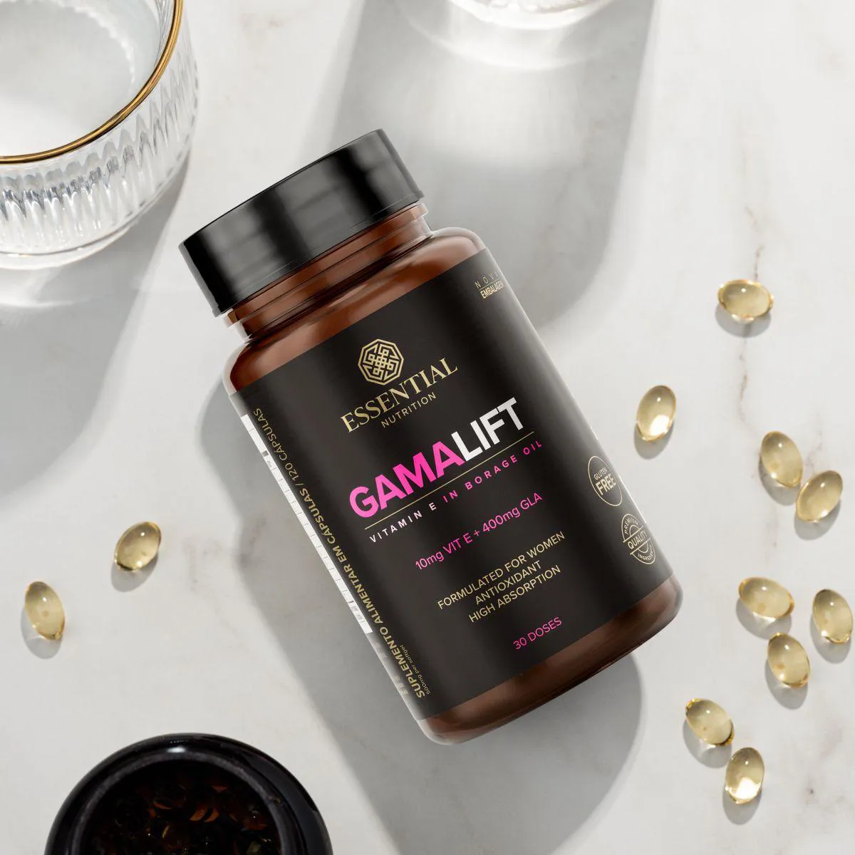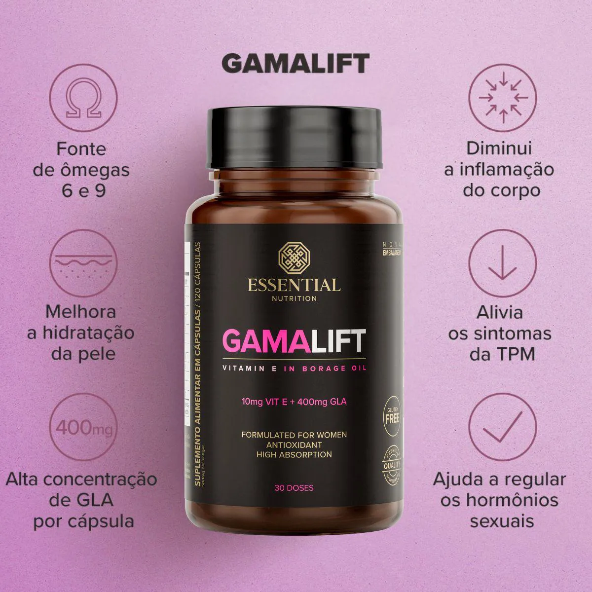 Gamalift da Essential Nutrition é um suplemento em cápsulas formulado com óleo de prímula e óleo de borragem, fontes de ácido gama-linolênico (GLA), além de vitamina e natural. A embalagem contém 120 cápsulas para consumo regular.
