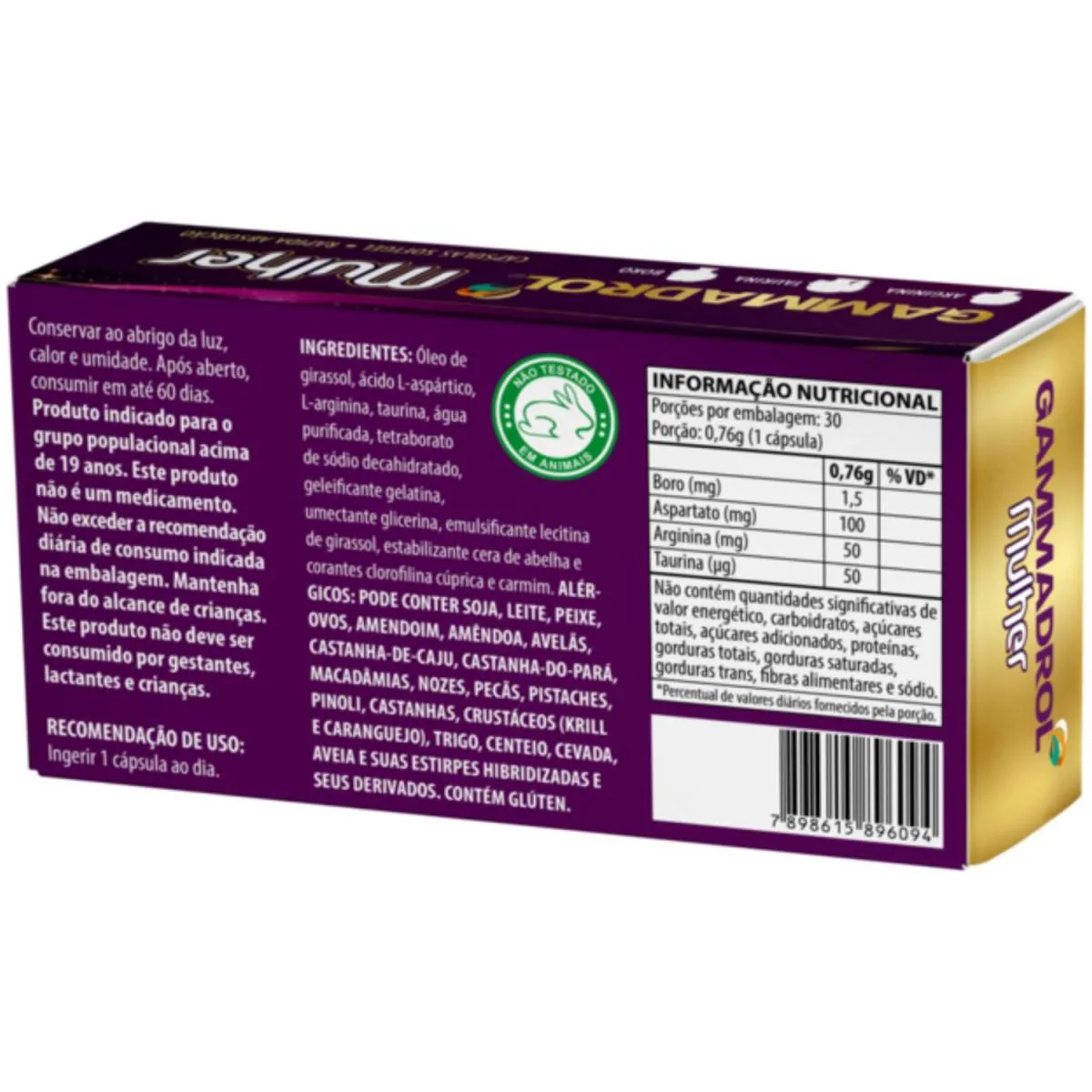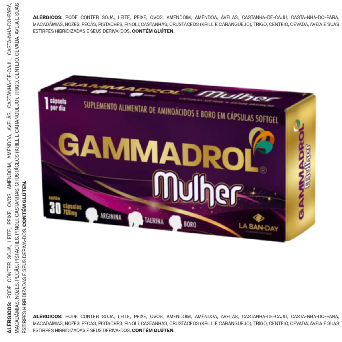 Suplemento Gammadrol Mulher saúde Feminina C30 - La San Day O Gammadrol Mulher é um suplemento nutricional formulado para atender as necessidades específicas do corpo feminino. Aqui estão algumas informações gerais que podem estar presentes em uma bula, mas consulte sempre a bula oficial do produto para detalhes específicos: Indicações: