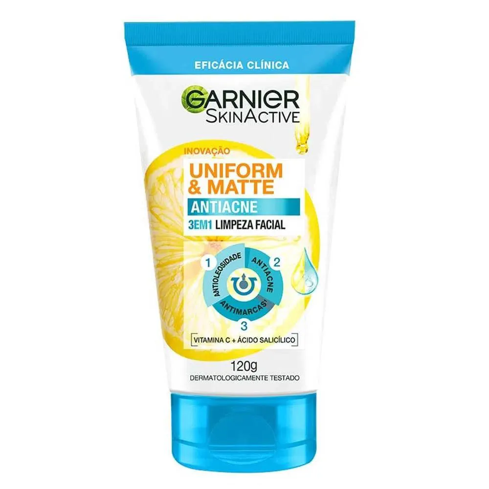 1 sabonete Facial 3 em 1 Garnier Skin Uniform & Matte Antiacne - 120g