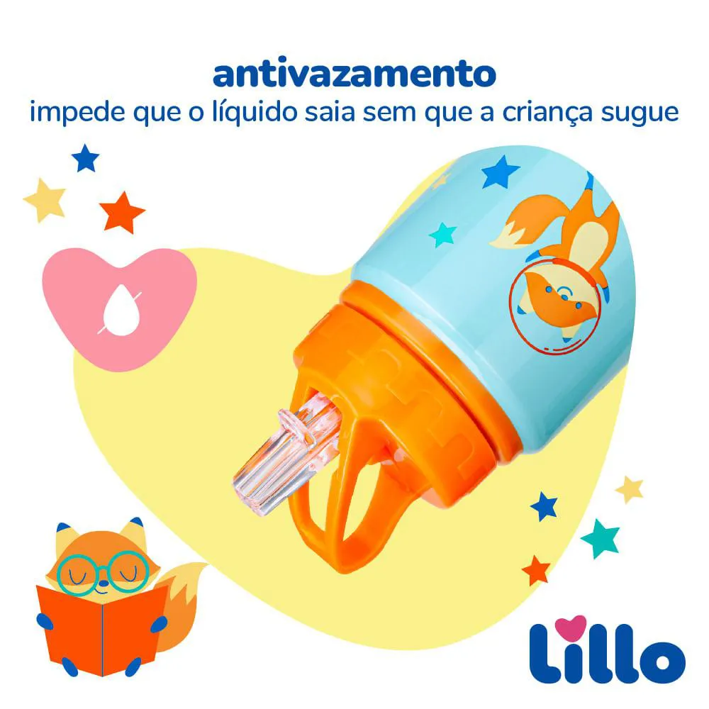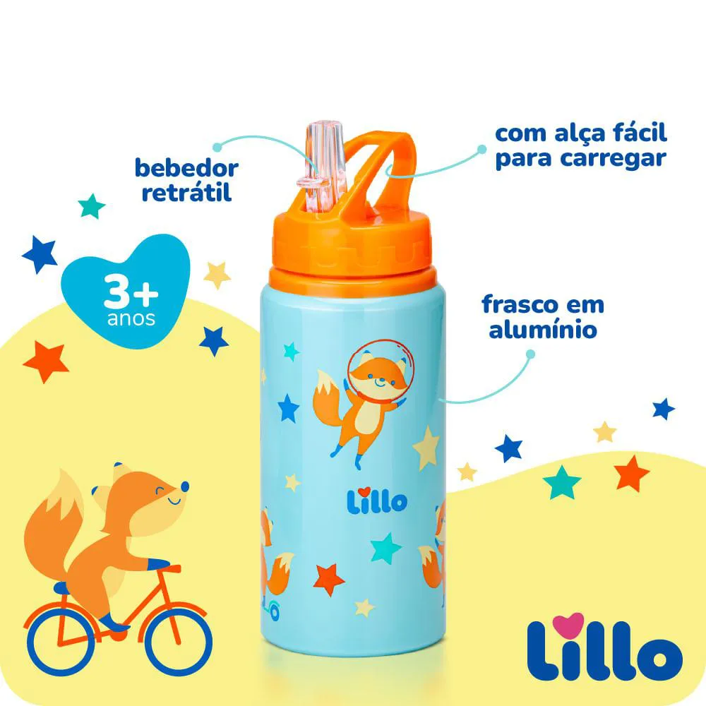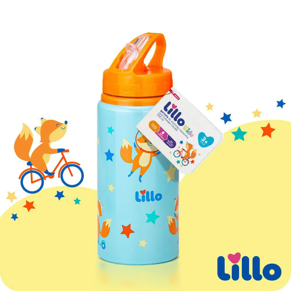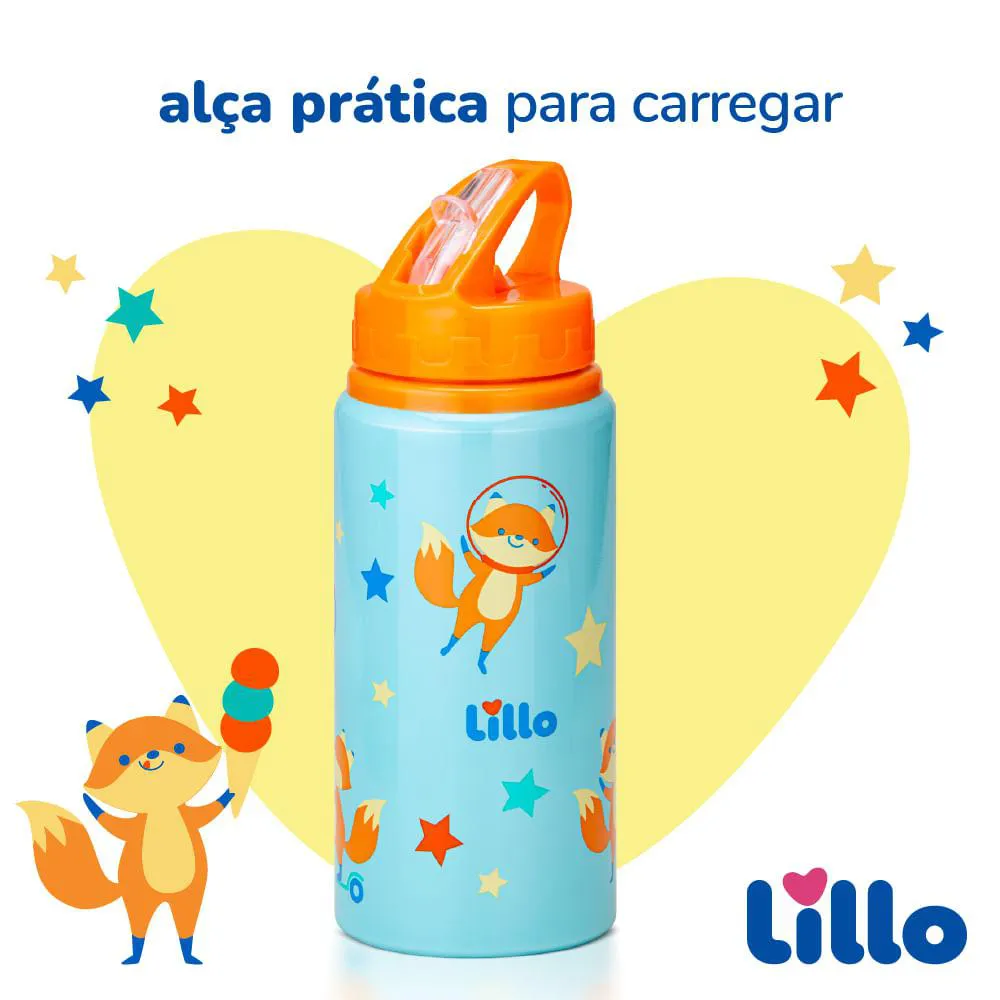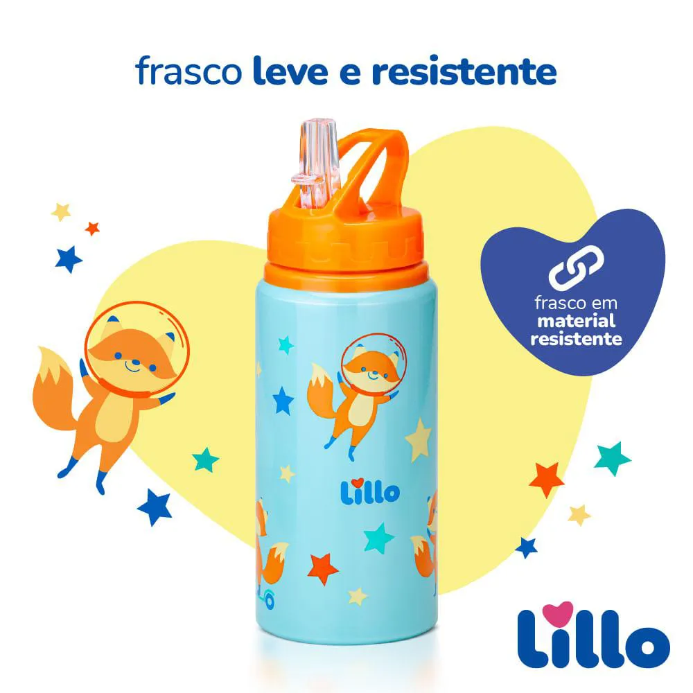 Garrafa infantil Inox Antivazamento com Alça e Canudo Retrátil Raposa 550ml Azul/Laranja Lillo A Garrafa Infantil com Canudo Retrátil Raposa da Lillo foi desenvolvida para acompanhar a rotina das crianças com praticidade, segurança e resistência. Pensada especialmente para os pequenos que estão sempre em movimento, ela combina um design divertido ao aço inoxidável de alta qualidade, extremamente resistente, tornando-se a escolha ideal para levar na mochila escolar, em passeios, viagens e atividades ao ar livre. Seu bico retrátil proporciona mais autonomia aos pequenos, facilitando o uso e evitando vazamentos. Enquanto a alça permite segurar ou pendurar a garrafa, reduzindo os riscos de queda durante o manuseio. Seu visual divertido com estampa de raposa e cores vibrantes estimula a criança a se hidratar mais durante o dia, tornando o produto funcional e encantador. Além disso, a garrafa é leve, fácil de transportar e totalmente livre de BPA, oferecendo mais proteção para os pequenos. Recomendada para crianças a partir de 3 anos, é perfeita para acompanhar todas as aventuras do dia a dia com conforto, estilo e muita segurança. Principais Características: