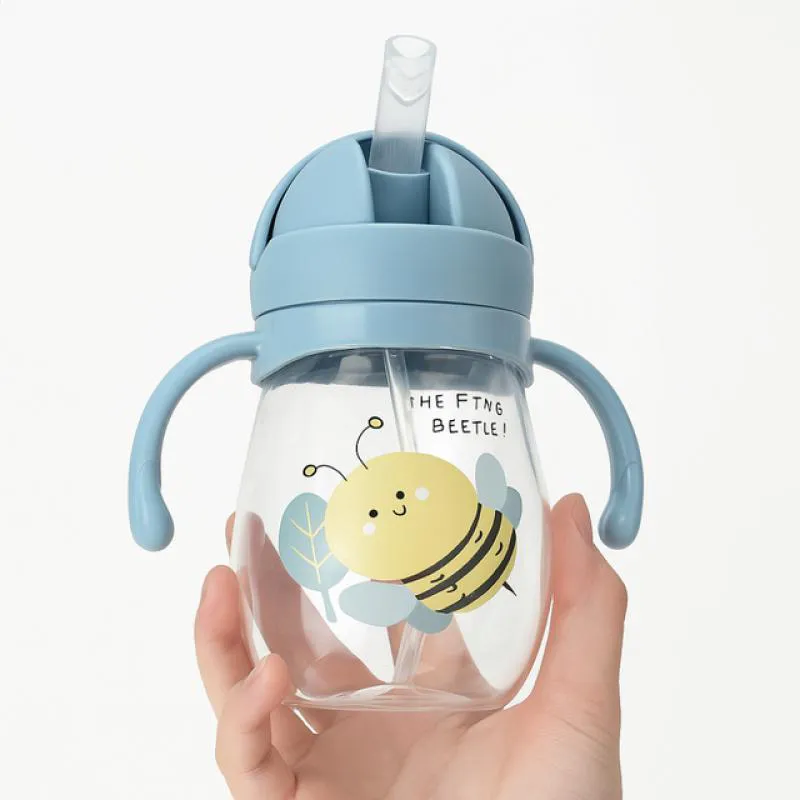 Garrafa Squeeze Copo Infantil Antivazamento com Alças Ergonômicas Treinamento para Criança Baby Bebê 350Ml Azul
