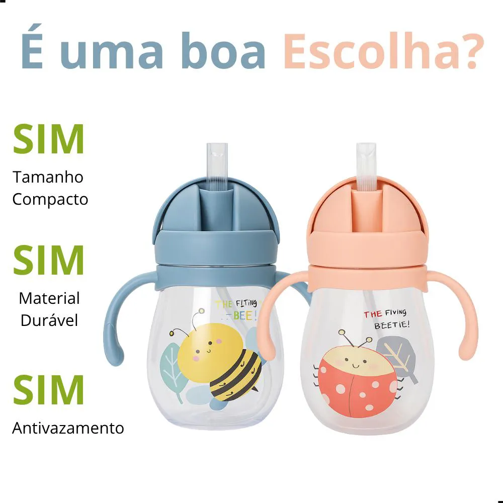 copo infantil de Treinamento Antivazamento com Alças – Seguro, Fofo e Ideal para o Dia a Dia do Bebê! Facilite a transição do seu bebê do mamadeirinha para o copo com o Copo de Treinamento Antivazamento, desenvolvido para garantir segurança, praticidade e independência nas primeiras experiências de beber sozinho. Com design ergonômico, alças confortáveis e bico macio, ele é perfeito para mãos pequenas e para o aprendizado sem bagunça. Benefícios do Produto: Antivazamento de verdade: tecnologia que evita respingos e desperdício, mesmo quando o copo cai. Bico de silicone macio: confortável para gengivas sensíveis, ideal para bebês em fase de dentição. Alças ergonômicas: facilitam o manuseio e incentivam o bebê a segurar o copinho sozinho. Material seguro: livre de BPA, ftalatos e substâncias tóxicas — 100% seguro para o seu bebê. Design encantador: cores suaves e desenhos divertidos que tornam as refeições mais alegres. Fácil de limpar: desmonta facilmente e pode ser lavado à mão ou na lava-louças. Ideal Para: Bebês e crianças em fase de transição alimentar, proporcionando autonomia, conforto e segurança nas refeições. Perfeito para uso em casa, passeios, viagens e creches. Especificações Técnicas: Capacidade: 350 ml Material: Polipropileno + Silicone alimentar Idade recomendada: a partir de 6 meses Livre de BPA e substâncias tóxicas Item incluso: 1 Copo Infantil de Treinamento com Alças e Tampa