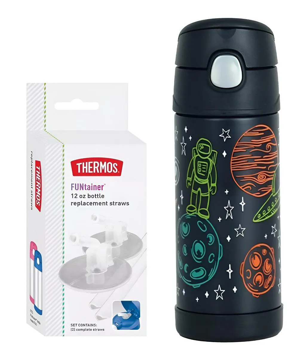 Garrafinha Térmica Funtainer 355Ml + Canudos Refil Thermos Espaço
