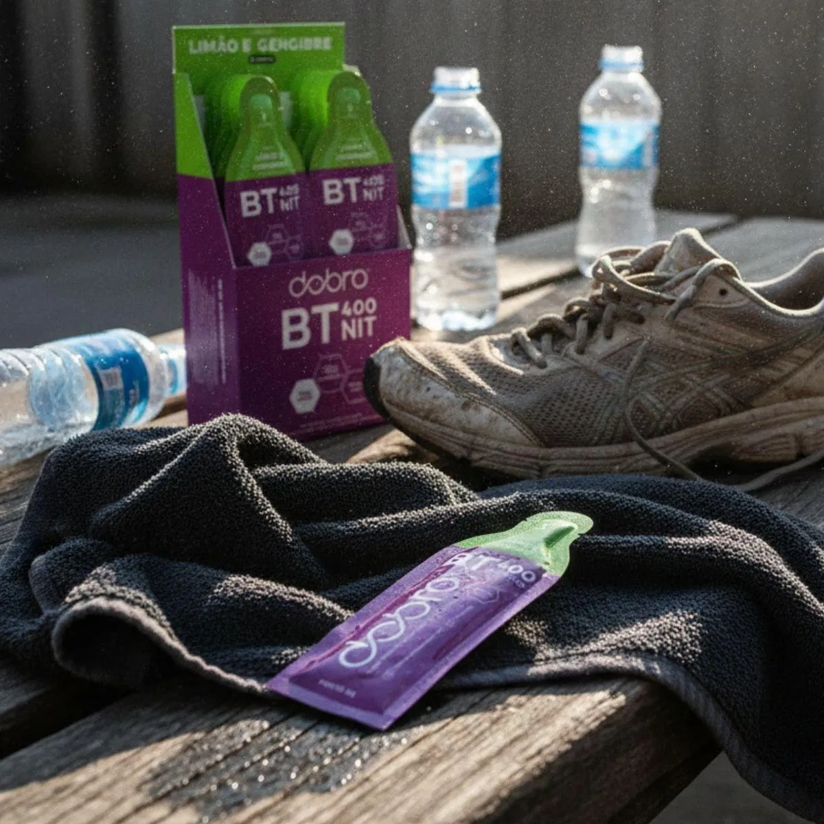 O gel BT 400 com 75 mg de cafeína oferece o equilíbrio perfeito entre energia e estímulo. fornece 400 mg de nitrato vegetal para apoiar a circulação combinados com utiliza maltodextrina e palatinose para energia rápida e progressiva e contém eletrólitos como sódio e potássio garantem suporte prolongado ao desempenho, enquanto a cafeína moderada potencializa a concentração sem provocar agitação excessiva.A composição é livre de ingredientes de origem animal, glúten e lactose, e utiliza edulcorantes naturais de baixo índice glicêmico. Os eletrólitos presentes ajudam a repor os sais perdidos e evitam a queda de rendimento em treinos longos.Um sachê deve ser ingerido 20 minutos antes do treino e outro pode ser consumido durante atividades de longa duração. A textura é fluida e o sachê é prático para abrir mesmo em movimento, facilitando o consumo em corridas, ciclismo ou treinos de alta intensidade. Não consuma mais de dois sachês ao dia para evitar excesso de cafeína.Direcionado a ótimo para corredores e triatletas que desejam um estímulo equilibrado sem excesso de cafeína, cada caixa com 10 sachês de 30 g é facilmente transportado em cintos ou bolsos de hidratação. Guarde em local seco e consulte um profissional antes de iniciar o uso, principalmente se você tem sensibilidade a estimulantes ou condições médicas.Para reforçar a confiança, a Dobro destaca que seus suplementos são produzidos em instalações com boas práticas de fabricação, usam matérias primas rastreadas e passam por rigoroso controle de qualidade. A marca não promete resultados milagrosos e orienta que o consumo esteja sempre aliado a uma alimentação balanceada e ao acompanhamento de um profissional de saúde ou nutrição. Guarde o produto em local limpo e seco e respeite a data de validade indicada na emb