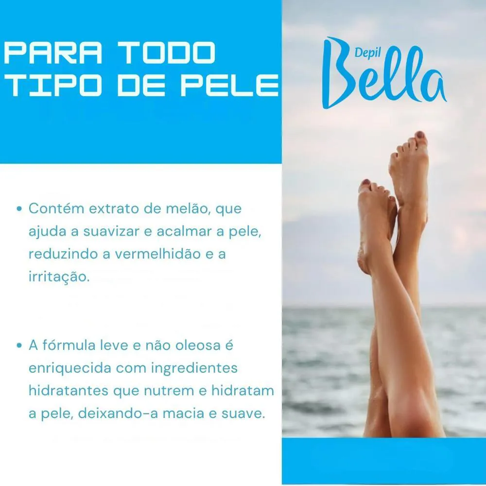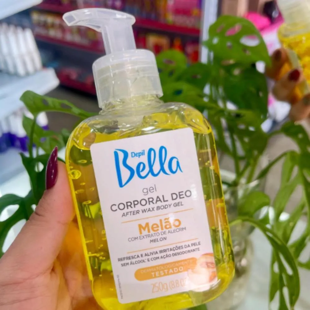 Hidratação refrescante e sensação de conforto imediato para a pele após depilação, barbear ou exposição ao sol, promovendo toque suave, revitalização e aparência saudável desde a primeira aplicação. Sua fórmula com extrato de melão e agentes hidratantes naturais proporciona ação calmante e nutritiva, ajudando a manter a pele confortável, sedosa e com toque refrescante, sem sensação oleosa ou resíduo pegajoso. Ideal para todos os tipos de pele, inclusive as mais sensíveis, o gel possui textura leve e de fácil absorção, colaborando para uma pele mais macia, saudável e bem-cuidada após o procedimento depilatório ou no seu ritual diário de cuidado corporal. Indicado para uso pós-depilação, pós-barba ou sempre que a pele necessitar de hidratação e conforto, o gel corporal Depil Bella Melão transforma o cuidado diário em uma experiência sensorial leve e agradável.