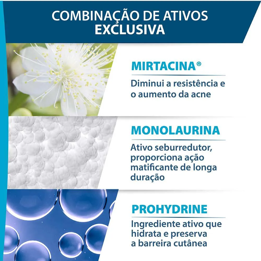 Mirtacina - Ingrediente ativo que ajuda a combater a bactéria C. acnes, limitando sua estrutura de biofilme. Mirtacina acalma e elimina as espinhas