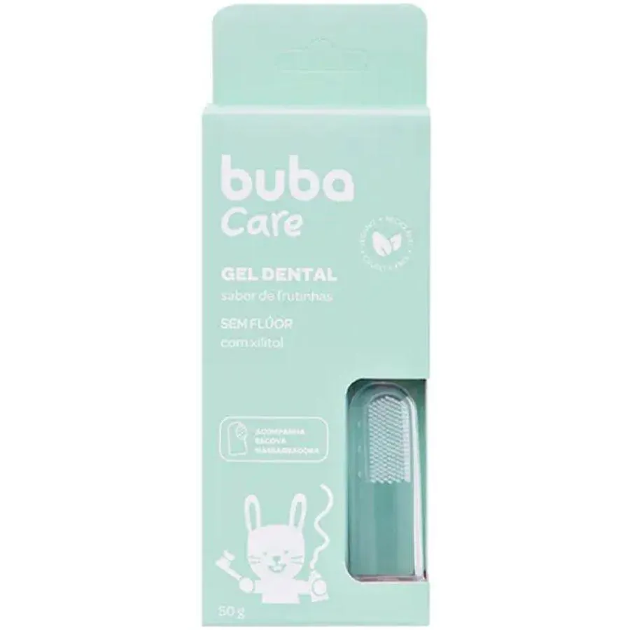 gel dental Buba Care foi especialmente desenvolvido para os primeiros cuidados bucais do bebê. Com ingredientes naturais, sua fórmula 100% vegana é livre de flúor, corantes e parabenos. Possui extrato de camomila, poderoso calmante, que alivia o desconforto causado pelo nascimento dos primeiros dentinhos, e xilitol, que auxilia na limpeza da gengiva e protege contra as cáries. Com gostinho agradável de frutinhas. Não contém açúcares. Modo de uso: Aplique uma pequena quantidade do Gel Dental Buba Care sobre a escova massageadora da buba e higienize a gengiva e os dentinhos do bebê em movimento circular. Pode ser usado diariamente.
