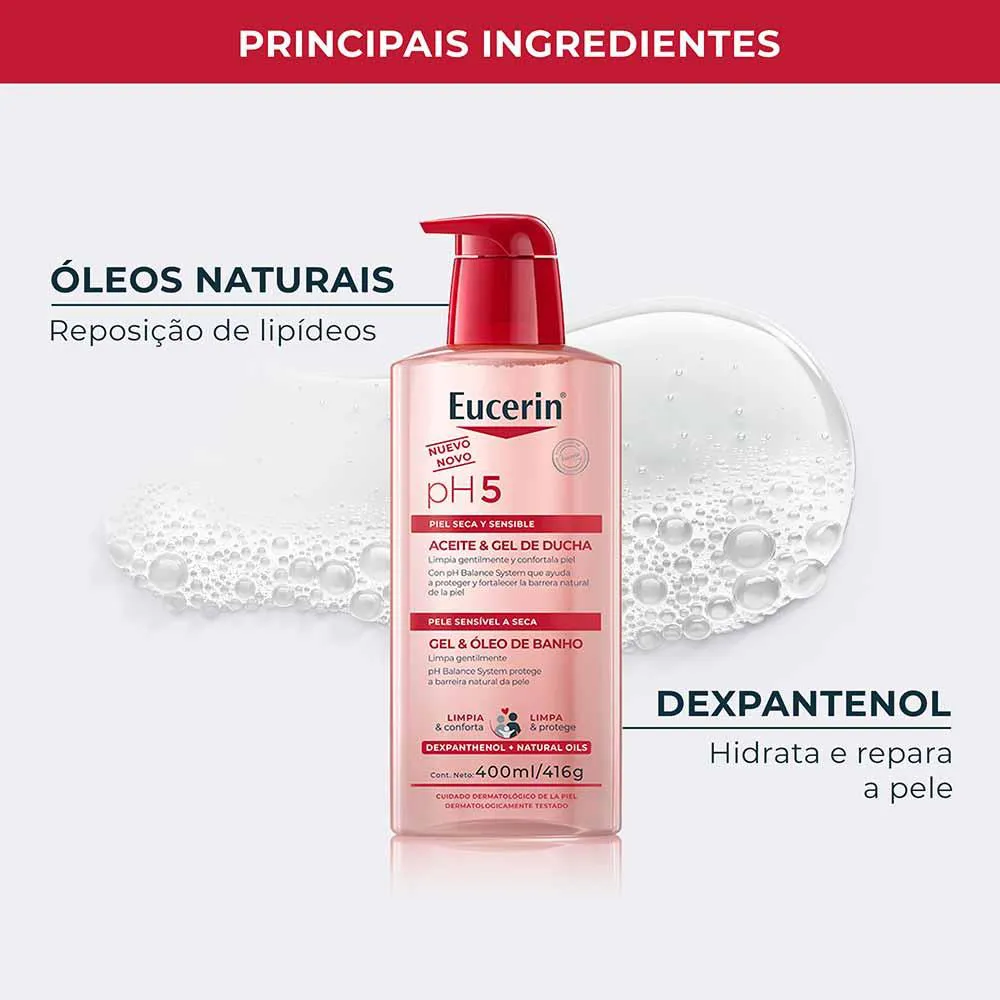 O Gel e Óleo de Banho Eucerin pH5 é um produto formulado especialmente para atender às necessidades das peles sensíveis.