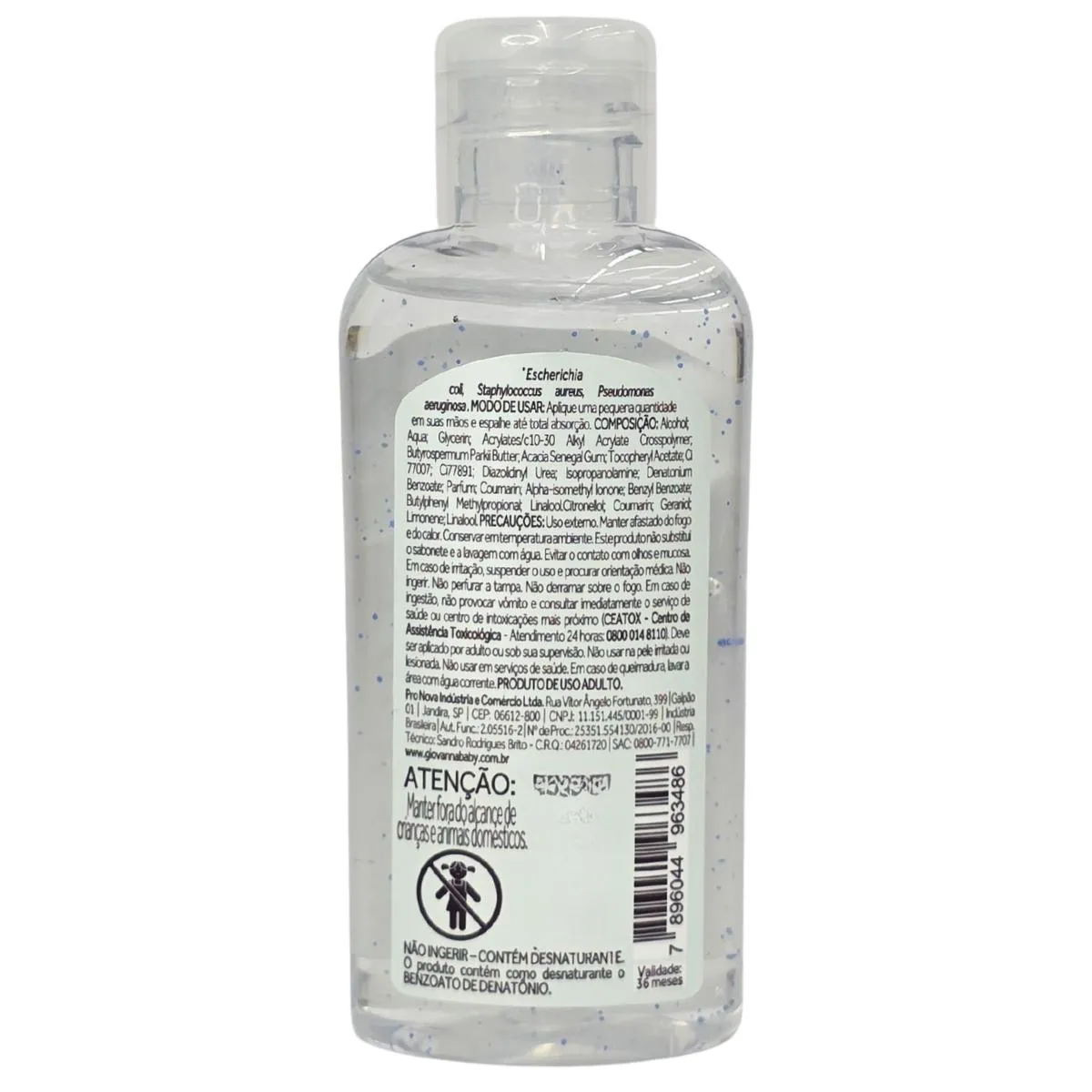 Finalidade: O Álcool em Gel Higienizante Giovanna Baby higieniza e hidrata as mãos. Seca instantaneamente, deixando uma sensação de limpeza e toque aveludado com suave perfume, sem ressecar e sem deixar as mãos pegajosas. Vitamina E + esferas hidratantes.