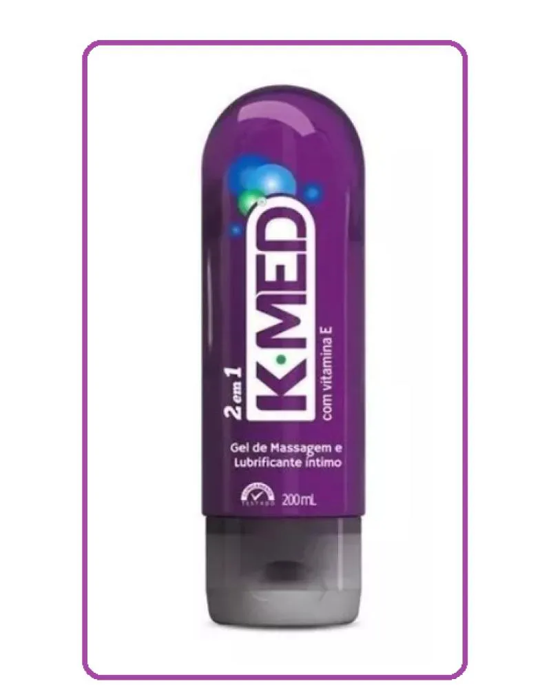 O K-Med 2 em 1 Gel lubrificante Íntimo e Gel de Massagem desenvolvido a base de água e vitamina e, que proporciona mais conforto, segurança e prazer durante a relação sexual. K-Med 2 em 1 serve tanto como lubrificante íntimo, quanto como gel massageador corporal. Pode ser usado com preservativos. Benefícios: Lubrificante íntimo, gel de massagem, a base de água, sem fragrância, facilmente removível, pode ser usado com preservativos, não contém contraindicações